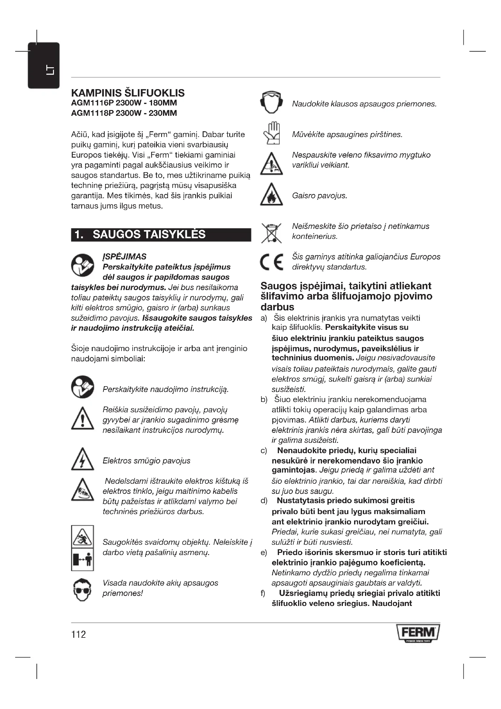 NAUDOJIMO INSTRUKCIJA AGM1116P Ferm