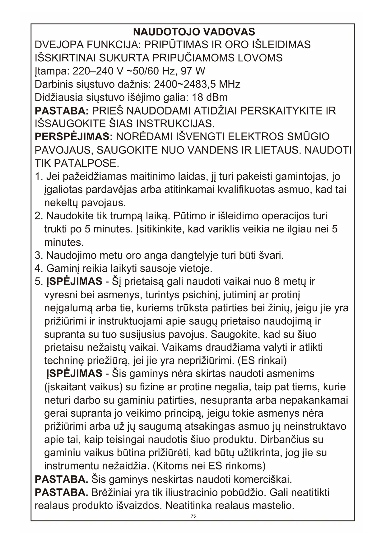 5. ĮSPĖJIMAS - Šį prietaisą gali naudoti vaikai nuo 8 metų ir