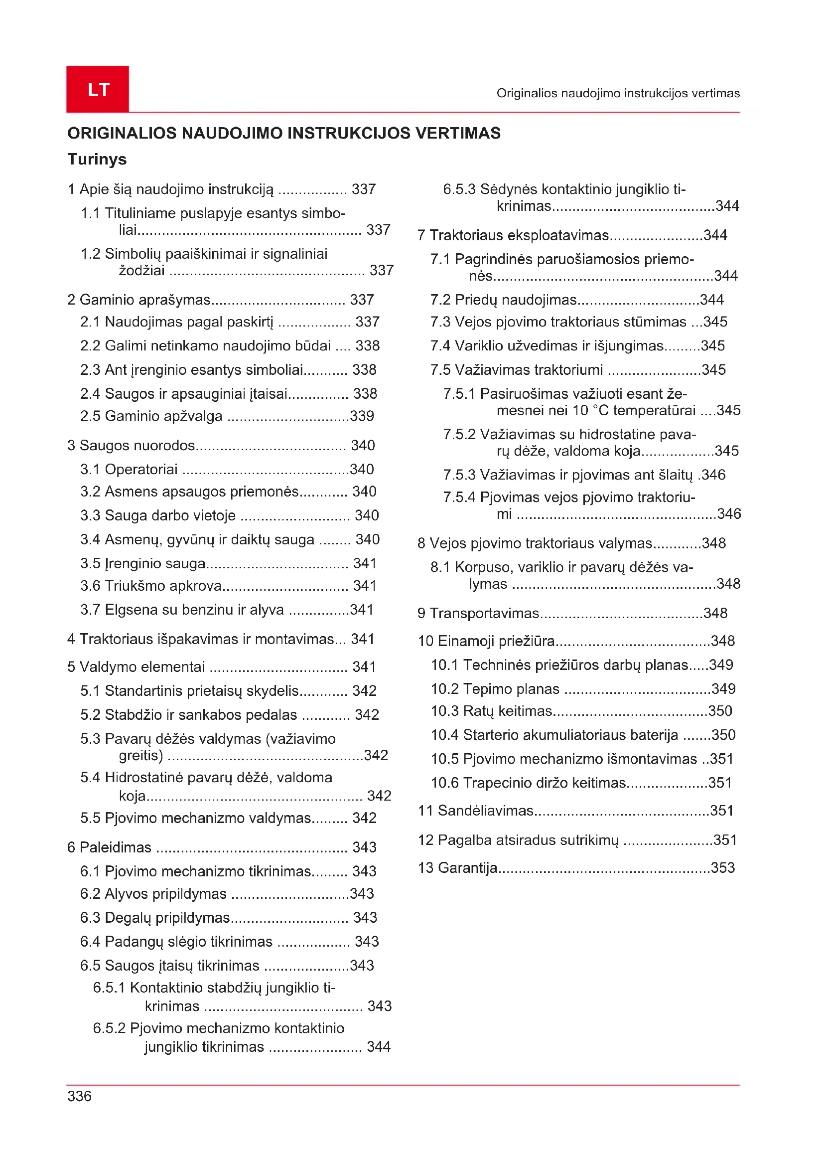 krinimas........................................344 7 Traktoriaus eksploatavimas.......................344