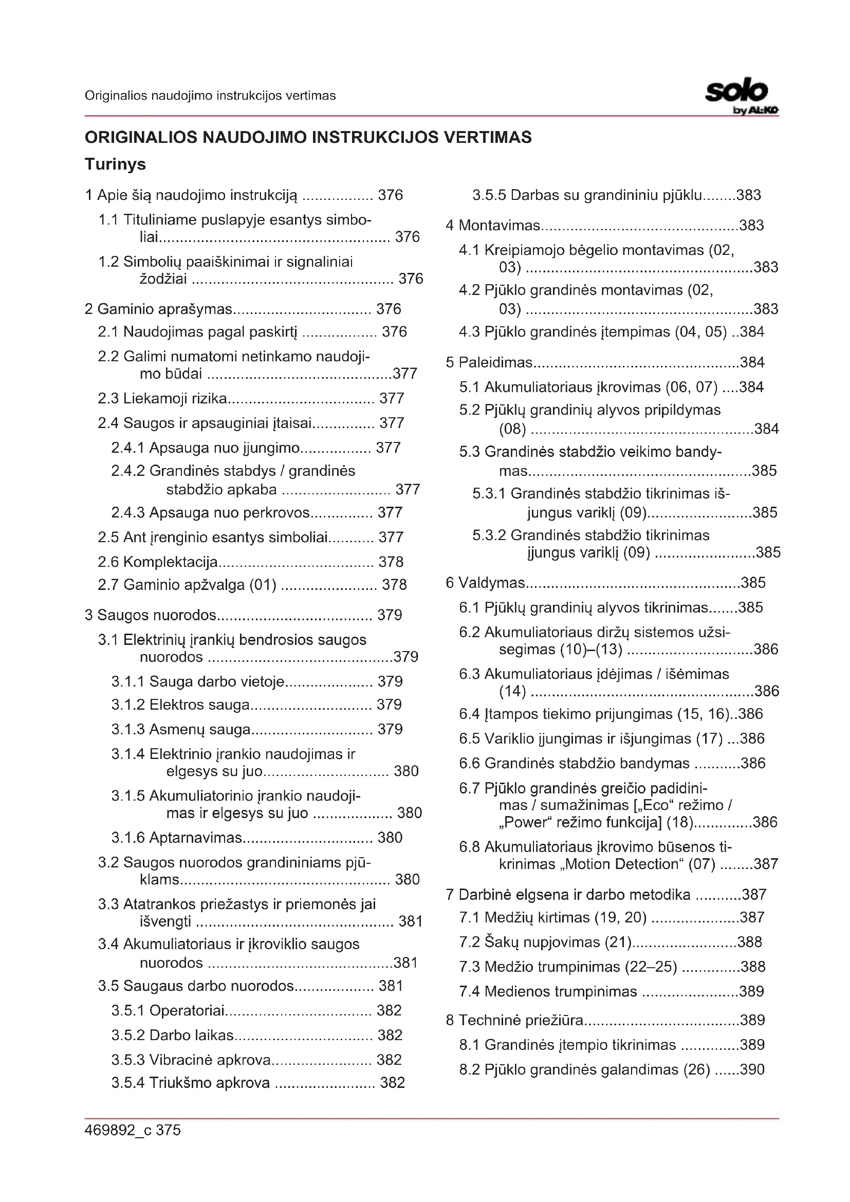 8.2 Pjūklo grandinės galandimas (26) ......390LT