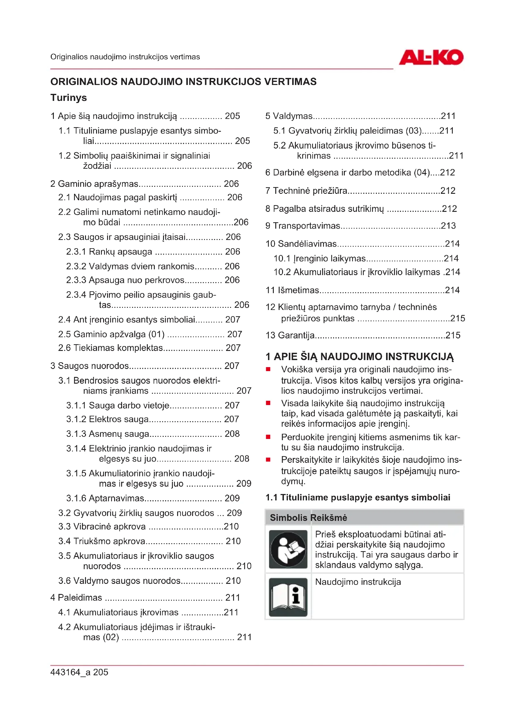 Turinys 1 Apie šią naudojimo instrukciją ................. 205