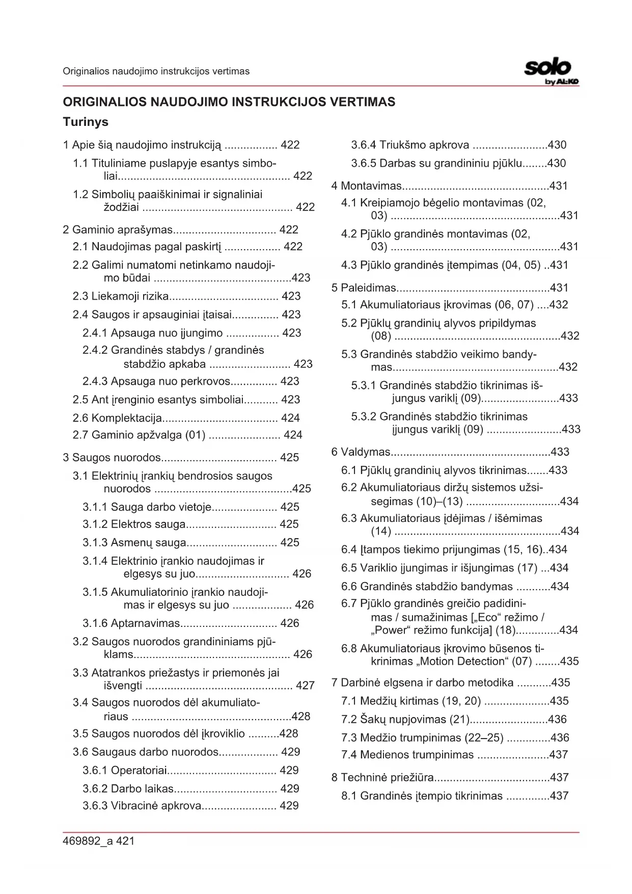 NAUDOJIMO INSTRUKCIJA Solo CS 4235 AL-KO