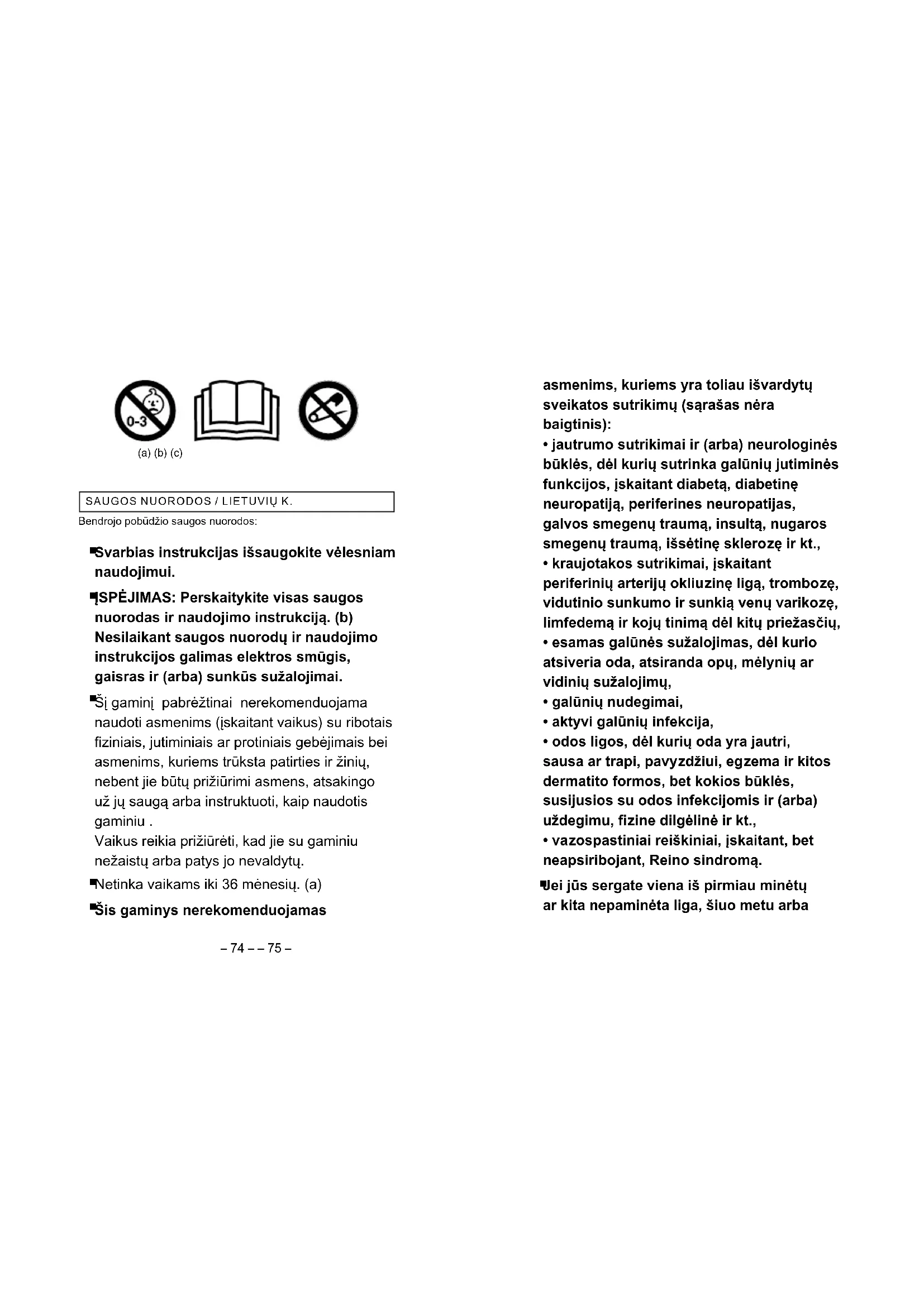 Jei jūs sergate viena iš pirmiau minėtų ar kita nepaminėta liga, šiuo metu arba (a) (b) (c) SAUGOS NUORODOS / LIETUVIŲ K. Bendrojo pobūdžio saugos nuorodos: