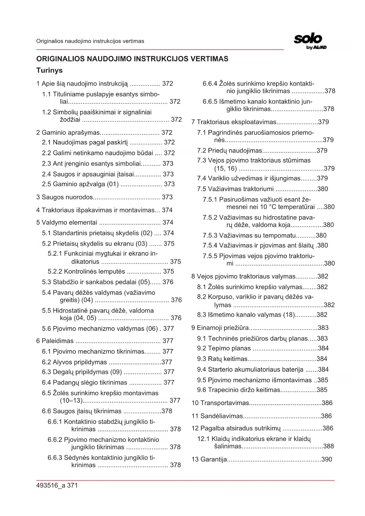 T 20105 HDE V2 - Traktorius SOLO - Nemokama naudojimo instrukcija