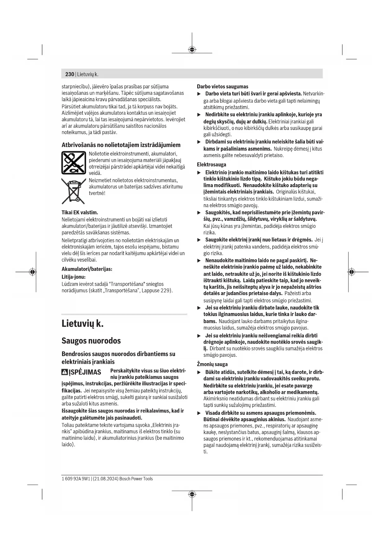 (22) Apsaugos nuo kritimo priemonės tvirtinimo vieta ant elektrinio įrankio 1 609 92A 9W1 | (21.08.2024) Bosch Power ToolsLietuvių k. | 233 (23) Apsaugos nuo kritimo priemonė