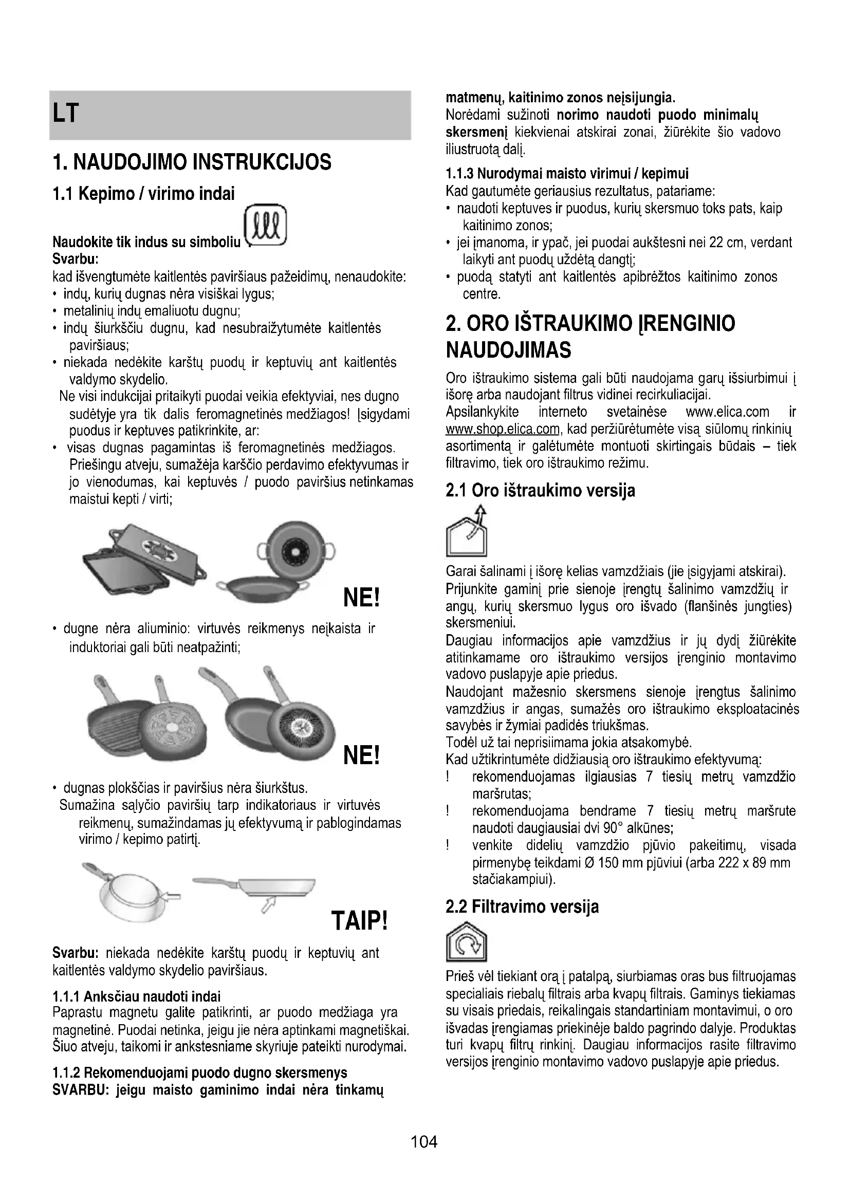 Apsilanky kite interneto svetainese www.elica.com in www.shop.elica.com, kad perziurétumete visa siulomu rinkiniu asortimenta ir galétumete montuoti skirtingais budais - tiek filtravimo, tick oro iStraukimo rezimu.