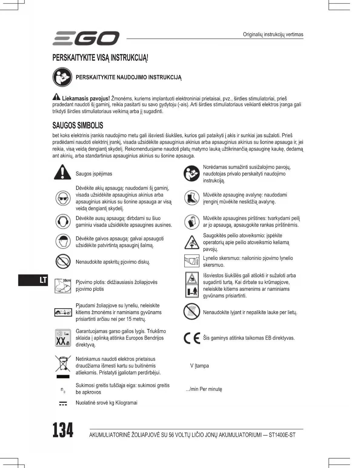 ST1401EST - žoliapjovė EGO - Nemokama naudojimo instrukcija