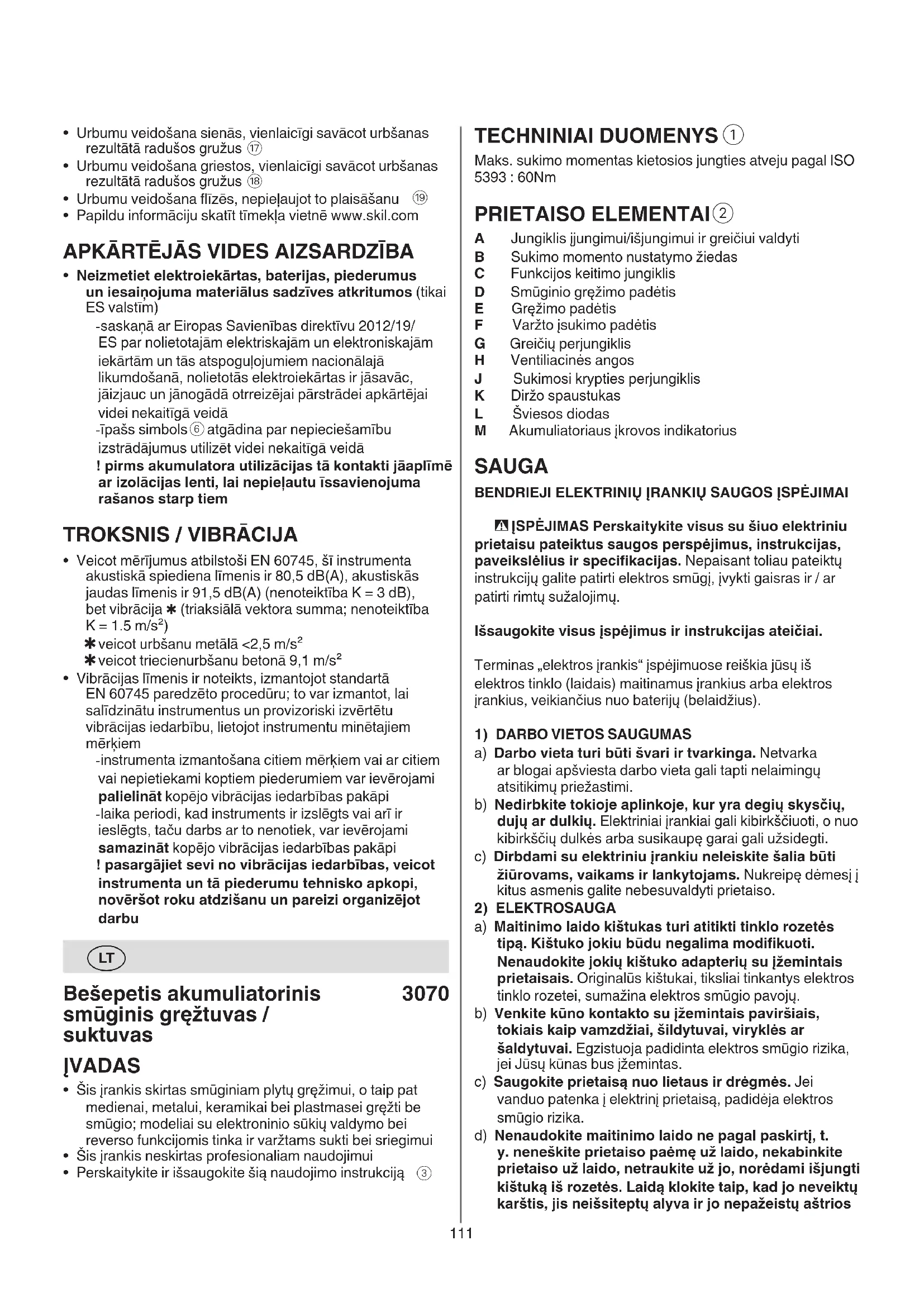 NAUDOJIMO INSTRUKCIJA 3070 HA SKIL