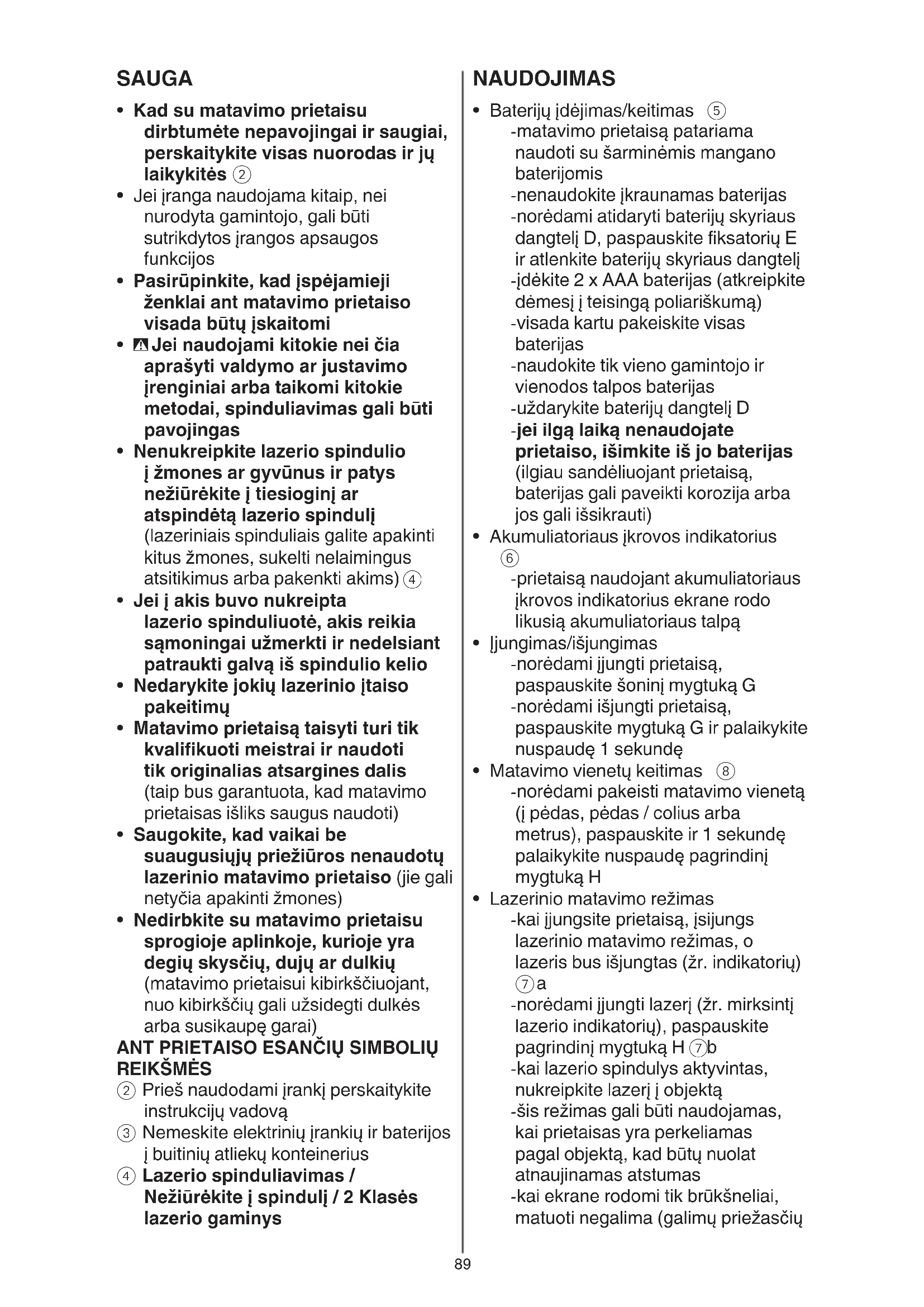 - Saugokite, kad vaikai be suaugusiųjų priežiūros nenaudotų lazerinio matavimo prietaiso (jie gali netyčia apakinti žmones)
