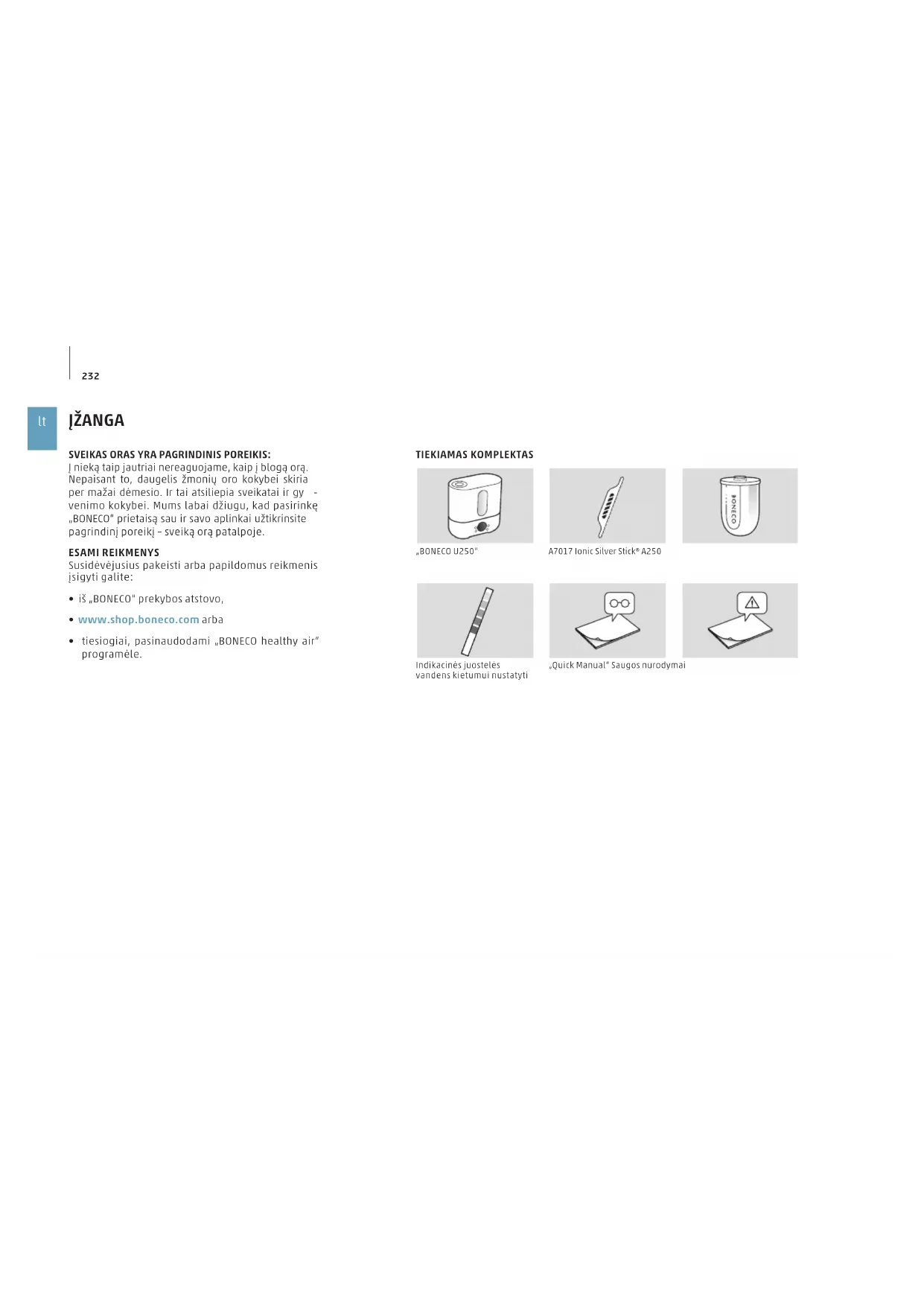 Atsargines dalis galite jsigyi iS „BONECO" prekybos atstovo arba musi interneto parduotuvje adresu www.shop.boneco.com