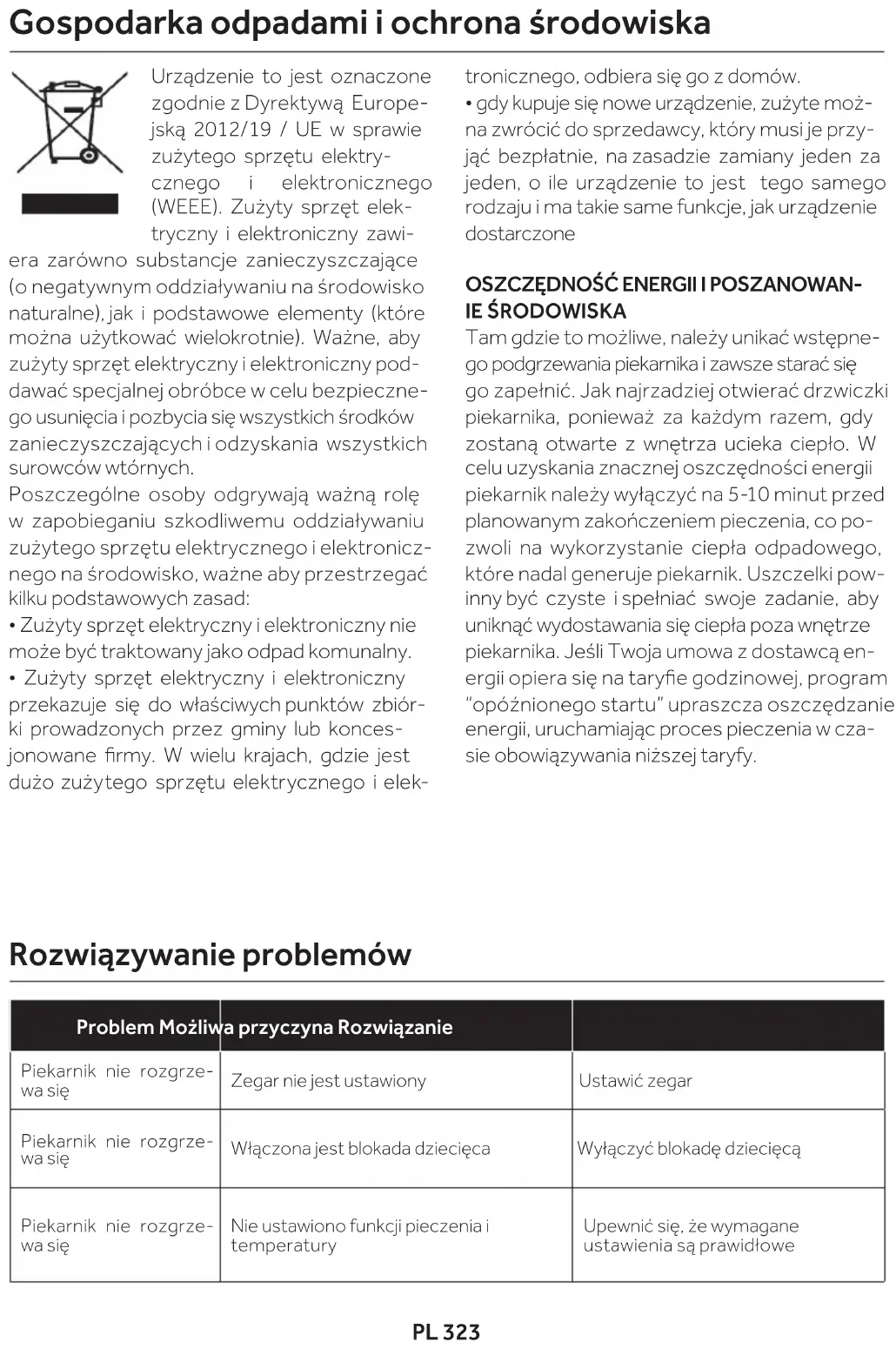Įspėjimas: Įsitikinkite, kad prietaisas yra atvėsęs, prieš jį liečiant. Būkite atsargūs su visais karštais paviršiais, nes yra nudegimų rizika. Naudokite distiliuotą arba geriamąjį vandenį. 100 mlLT 341 Atliekų tvarkymas ir aplinkosauga Šis prietaisas yra paženklintas pagal europinės direktyvos 2012/19/EU, reglamentuojančios elektrinių ir elektroninių prietaisų atliekų (WEEE) utilizavimą, reikalavi- mus. Elektrinių ir elektroninių prietaisų atliekose yra ir aplinką teršiančių medžiagų (kurios gali pakenkti aplinkai), ir pagrindinių žaliavų (kurias galima perdirbti ir vėl panaudoti). Labai svar- bu tinkamai tvarkyti elektrinių ir elektroninių prietaisų atliekas, kad būtų surenkamos visos kenksmingos medžiagos ir perdirbamos visos antrinės žaliavos. Žmonės gali prisidėti prie to, kad elektrinių ir elektroninių prietaisų atliekos nekeltų problemų aplinkai; labai svarbu laikytis kelių pagrindinių taisyklių: - elektrinių ir elektroninių prietaisų atliekų negalima mesti į buitinių šiukšlių konteinerius; - elektrinių ir elektroninių prietaisų atliekas būtina pristatyti į savivaldybės numatytus specialius surinkimo punktus. Kai kuriose šalyse stambiagabaritės elektrinių ir elektroninių prietaisų atliekos gali būti suren- Nesklandumų šalinimas Problema Galima priežastis Sprendimo būdas Orkaitė nekaista. Nenustatytas laikrodis. Nustatykite laikrodį. Orkaitė nekaista.Nepasirinktas gaminimo režimas ir nenustatyta temperatūra.Atlikite reikiamus nustatymus.Nieko nevyksta paspaudus mygtuką.Apgaravo arba aprasojo valdymo skyde-lio mygtukai.Mikropluošto šluoste nuo valdymo skydelio nuvalykite susikaupusią drėgmę. kamos iš namų. Taip pat, perkant naują buitinį prietaisą, parduotuvė privalo priimti iš pirkė- jo seną prietaisą, kuris dydžiu ir paskirtimi yra analogiškas perkamam prietaisui.