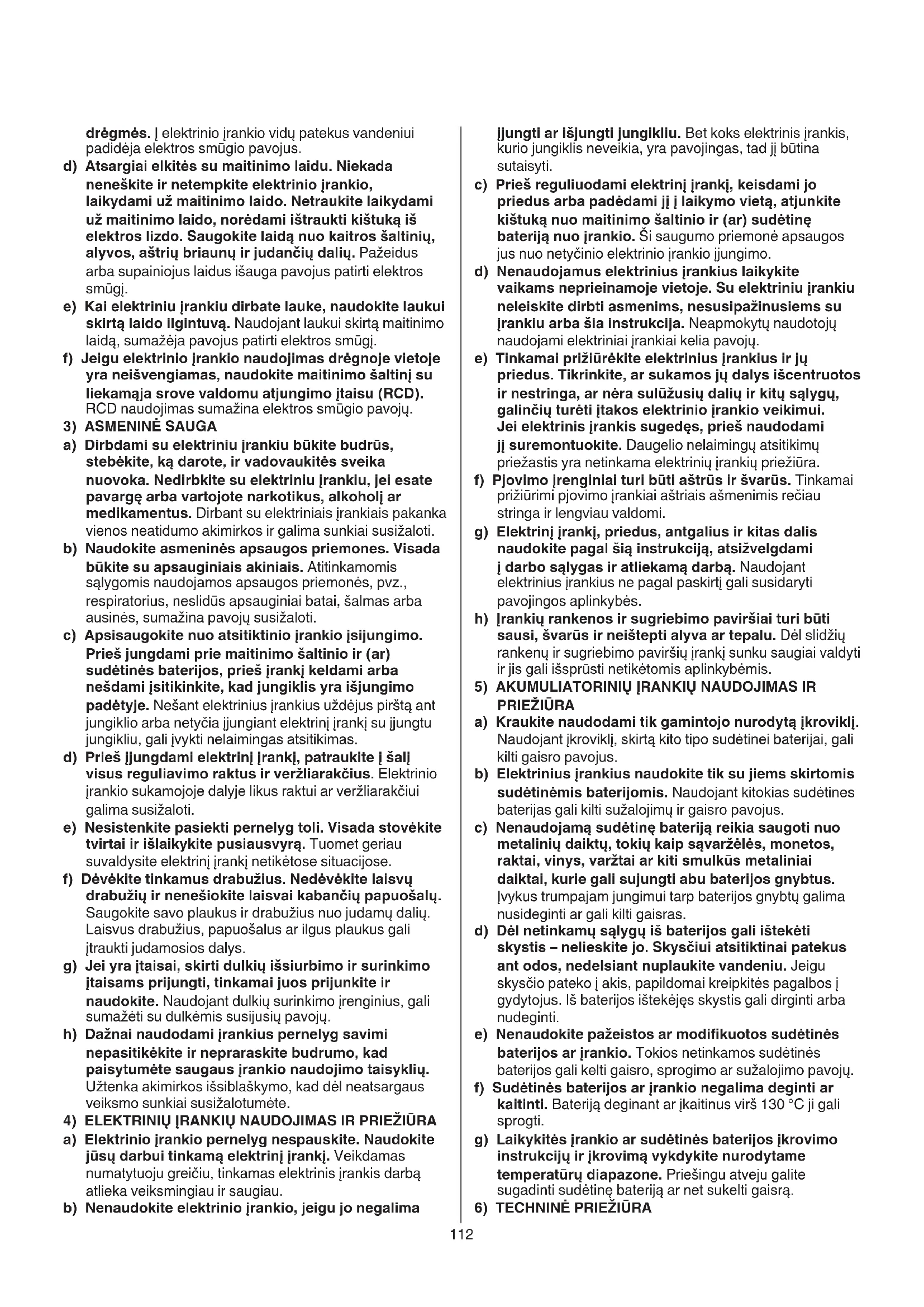 4) ELEKTRINIŲ ĮRANKIŲ NAUDOJIMAS IR PRIEŽIŪRA