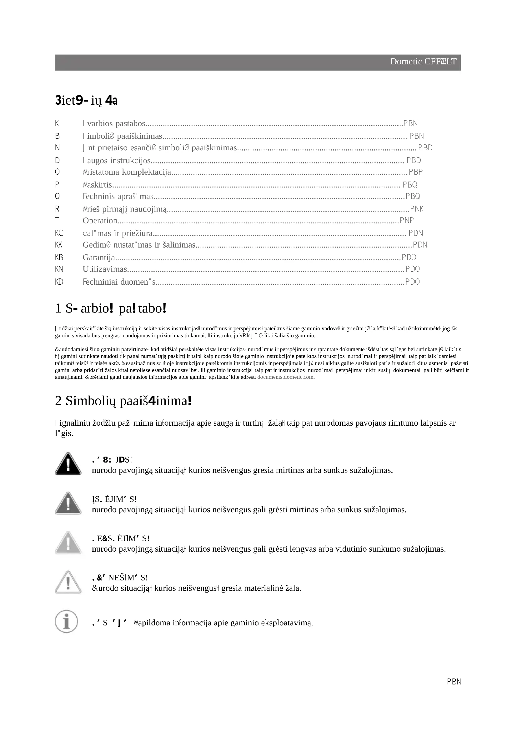 - 622Dometic CFFLT Lietuvių k. 1 Svarbios pastabos p. 623