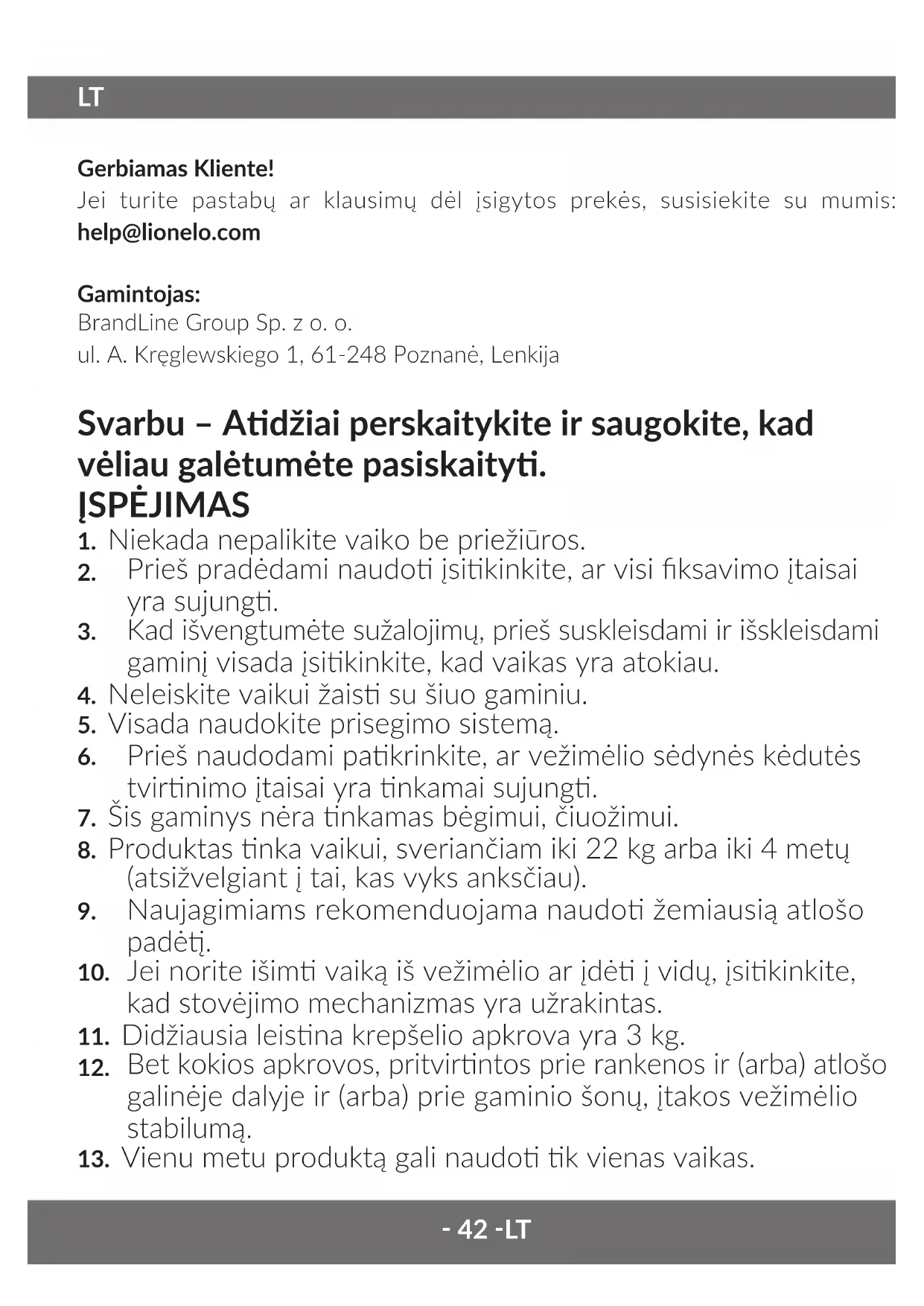 13. Vienu metu produktą gali naudo k vienas vaikas.