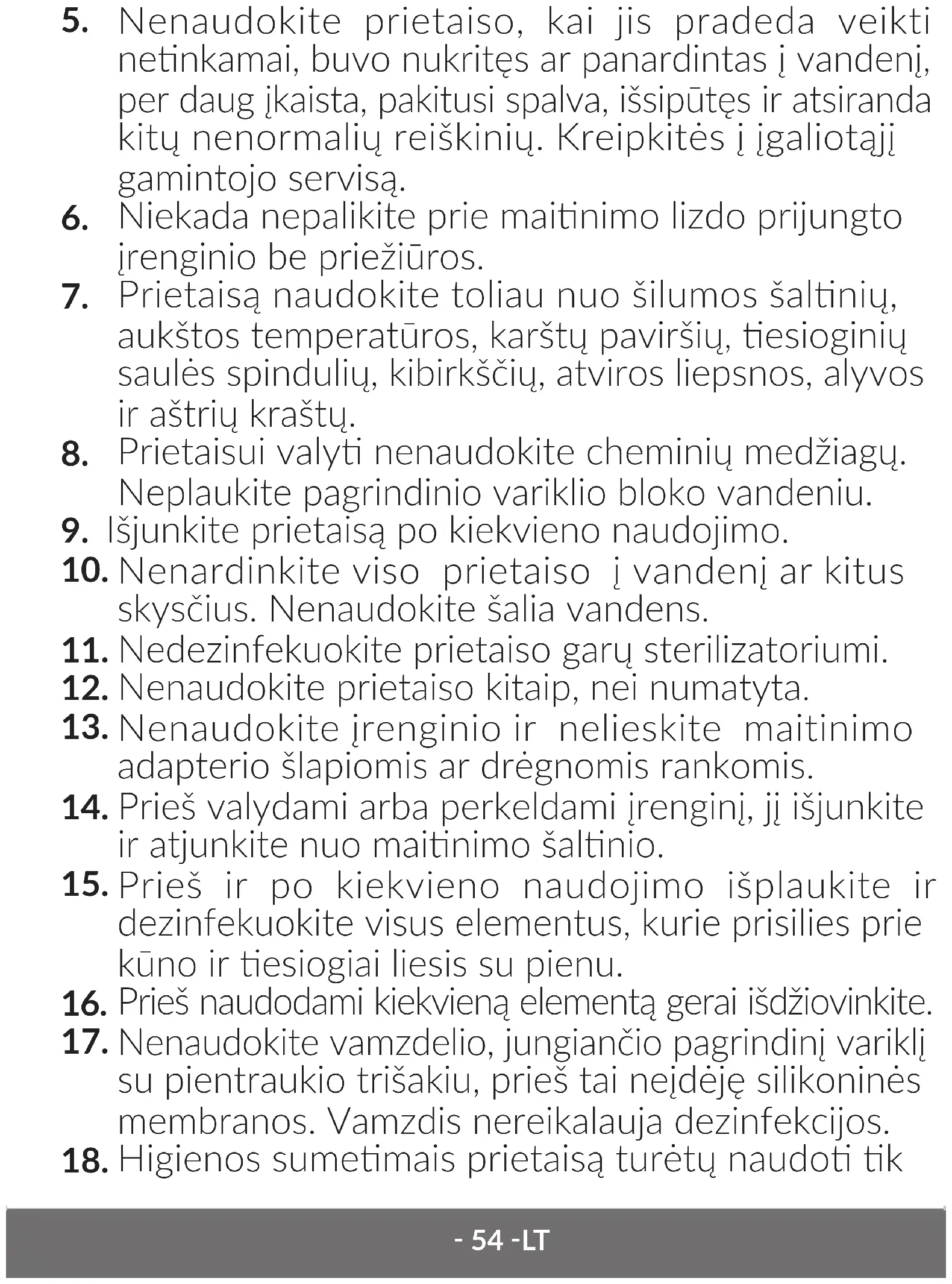 1. Netaisykite ir nekeiskite įrenginio. Šias veiklas gali