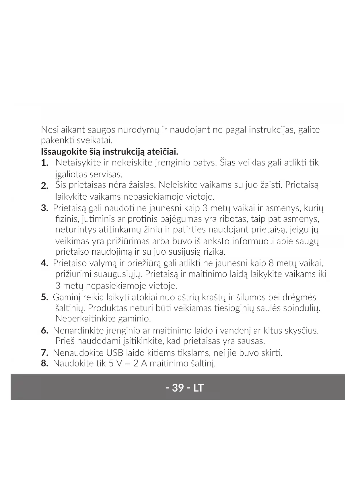 4. Prietaiso valymą ir priežiūrą gali atlik ne jaunesni kaip 8 metų vaikai,