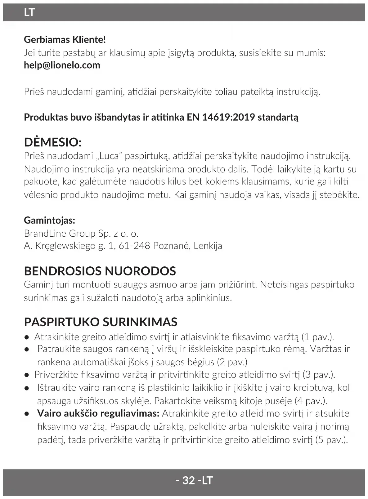 Luca - Motoroleris Lionelo - Nemokama naudojimo instrukcija