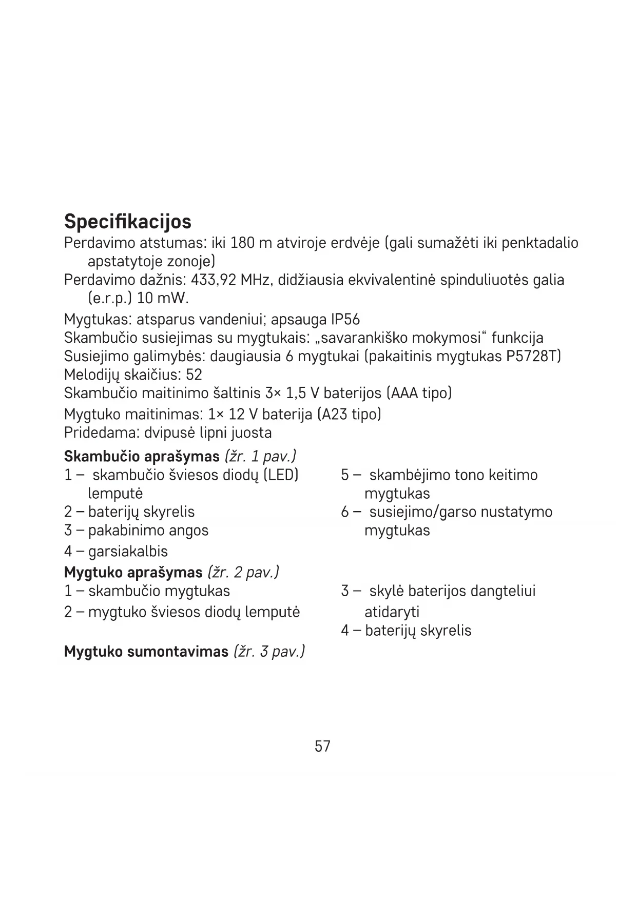 - Skambutis (imtuvas) skirtas naudoti tik viduje, sausoje aplinkoje.61