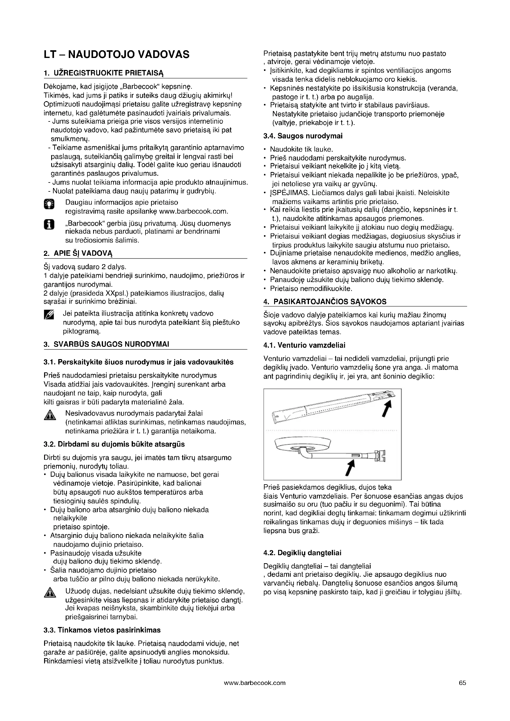 įgaliotąjį atstovą. Kol nuotėkis bus sutvarkytas, prietaisu naudotis draudžiama. Žr. www.barbecook.com arba netoliese jūsų esančių „Barbecook“ įgaliotojų atstovų sąrašą.