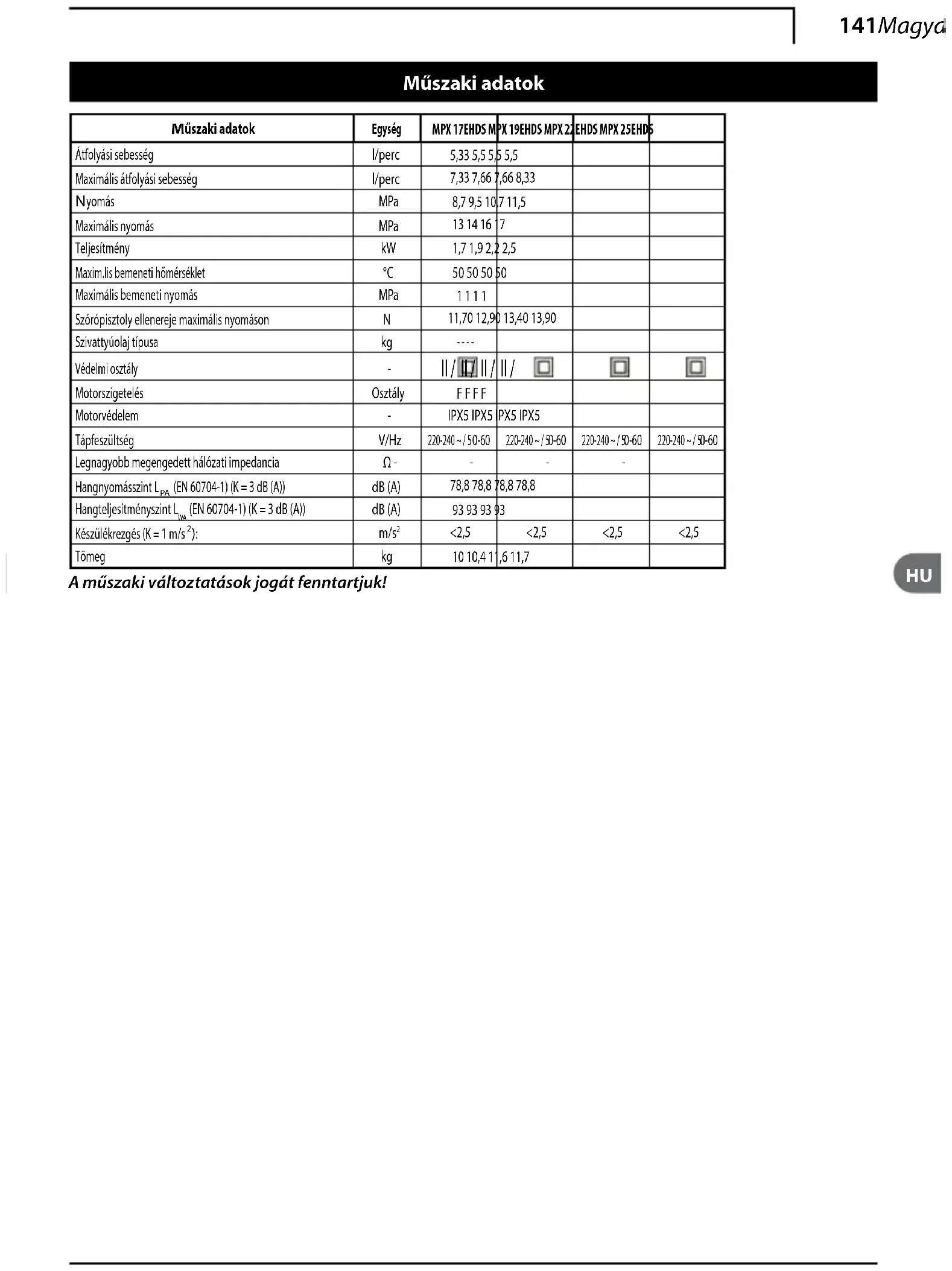Maksimalus įleidimo slėgis MPa 1 1 1 1Pistoleto stūmos jėga esant maksimaliam slėgiui 11,70 12,90 13,40 13,90Siurblio alyvos tipas - - - -Apsaugos klasė