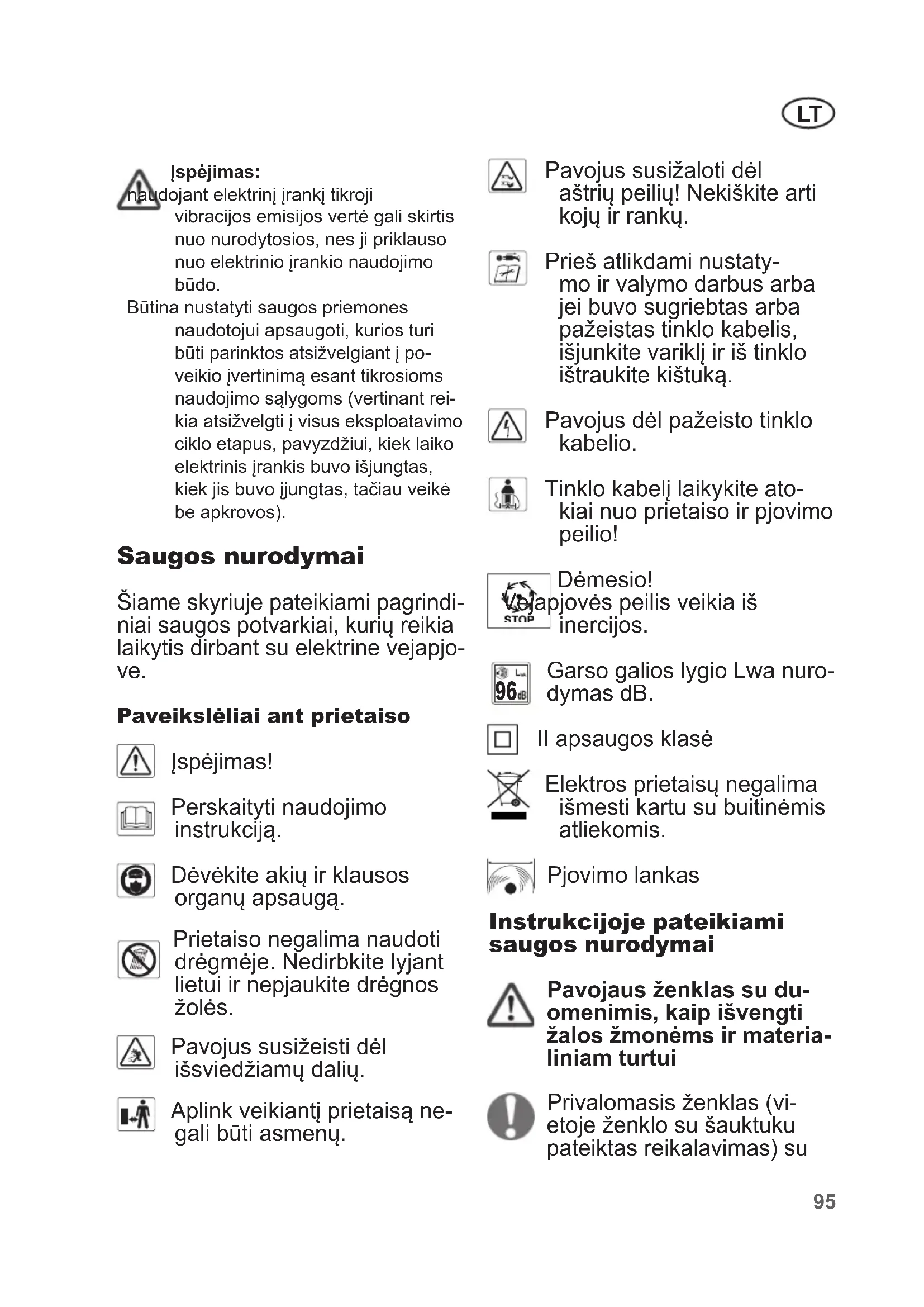 - Instrukcijoje pateikiami saugos nurodymai p. 95