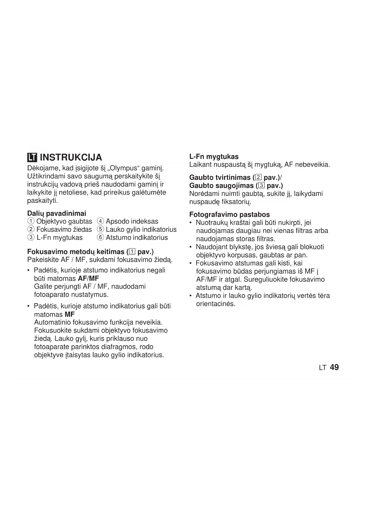 NAUDOJIMO INSTRUKCIJA ED 25mm F1.2 PRO OLYMPUS