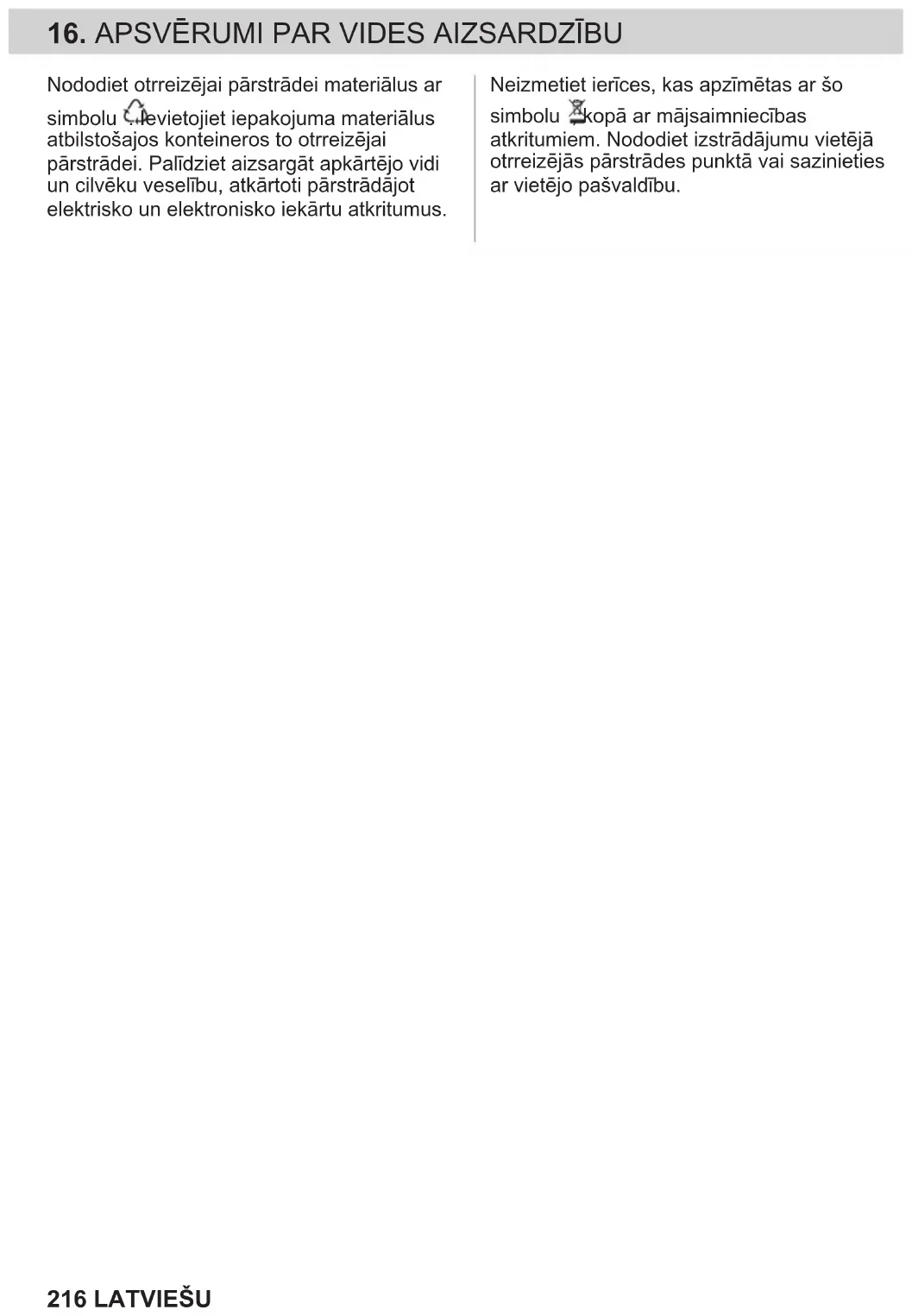 - Šio gaminio viduje esanti (-čios) lemputė (- ės) ir atskirai parduodamos atsarginės lemputės: Šios lemputės turi atlaikyti ekstremalias fizines sąlygas buitiniuose prietaisuose, pavyzdžiui, temperatūrą, vibraciją, drėgmę, arba yra skirtos informuoti apie prietaiso veikimo būseną. Jos nėra skirtos naudoti kitoms paskirtims ir netinka patalpoms apšviesti.
