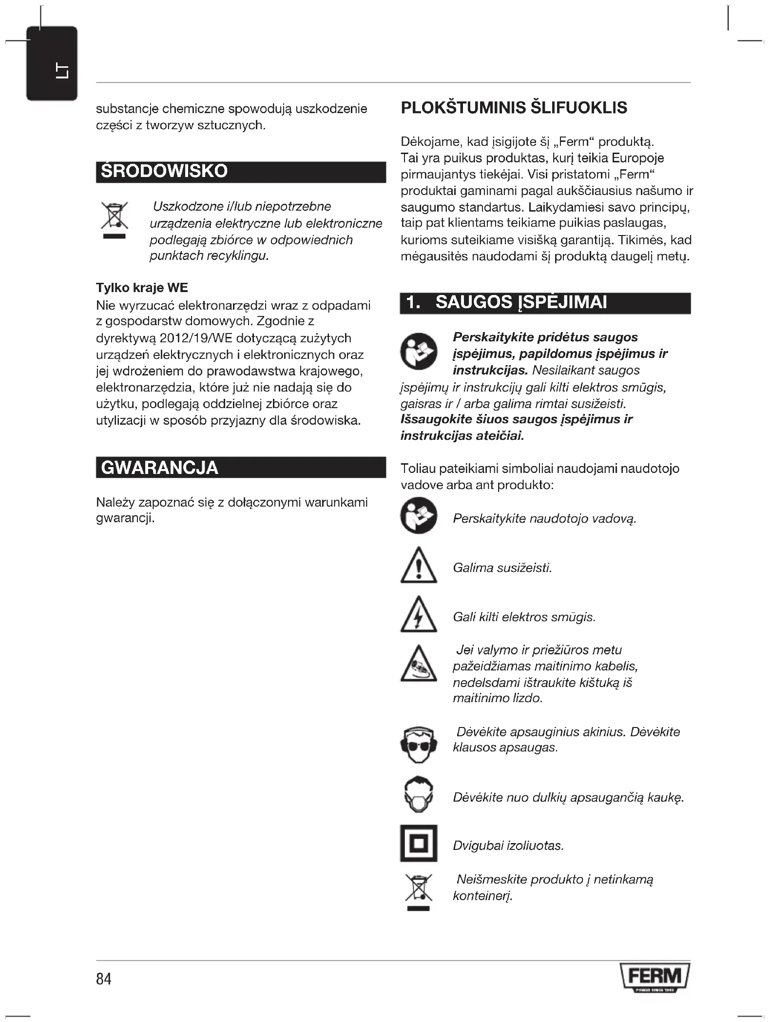 NAUDOJIMO INSTRUKCIJA PSM1034 Ferm