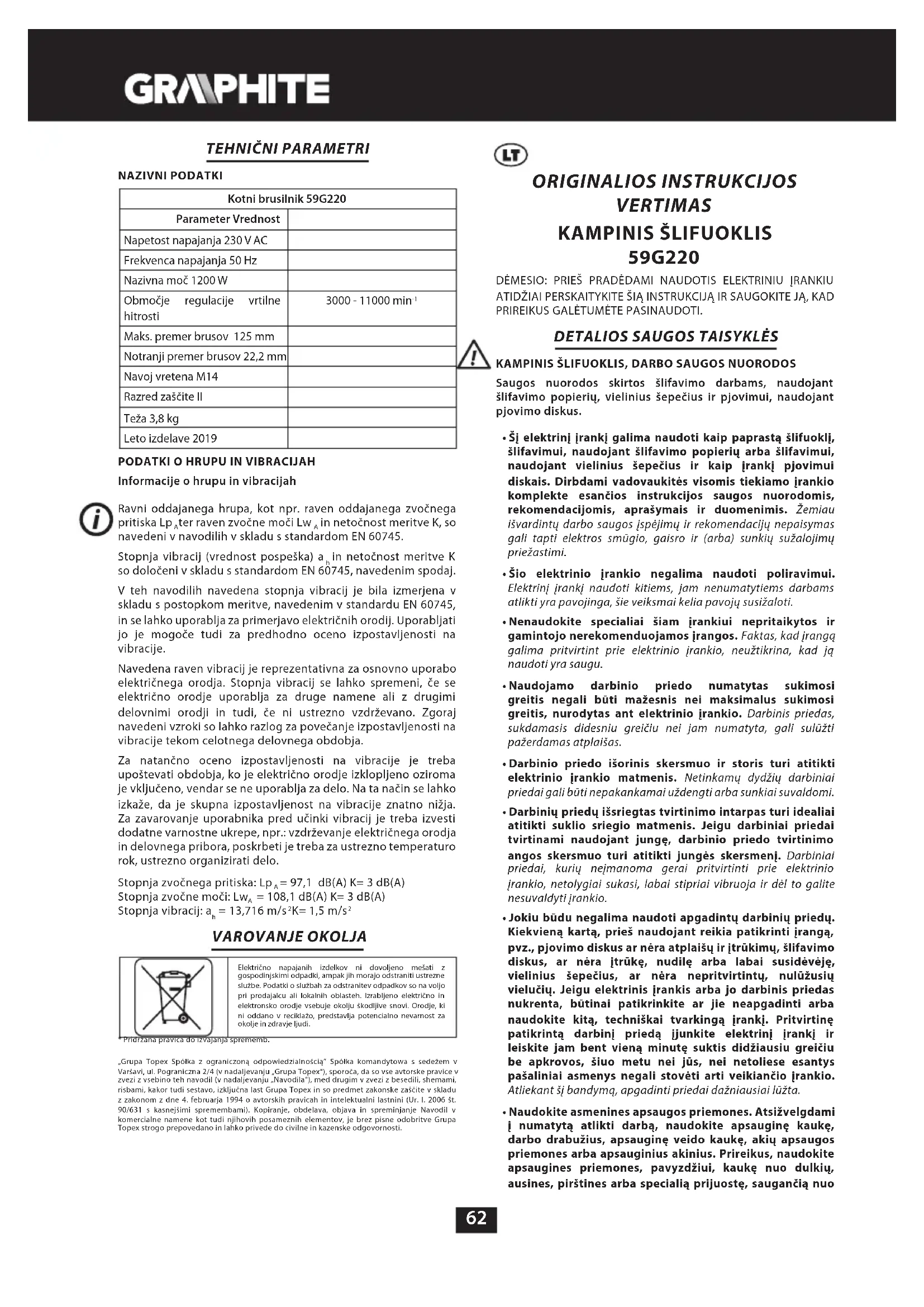 NAUDOJIMO INSTRUKCIJA 59G220 Graphite