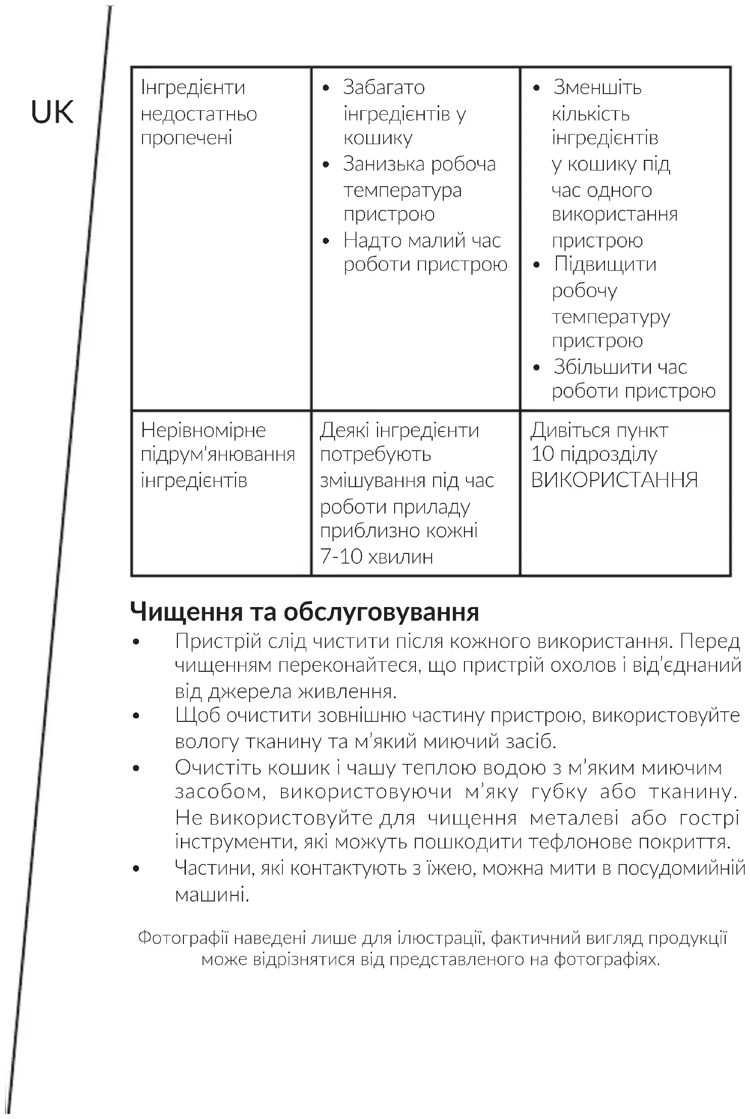 - Pratęskite prietaiso veikimo laiką Netolygus ingredientų iškepimas Kai kuriuos ingredientus reikia maišy prietaiso veikimo metu maždaug kas 7-10 minučių Žr. NAUDOJIMAS skyriaus 10 punktą Valymas ir priežiūra