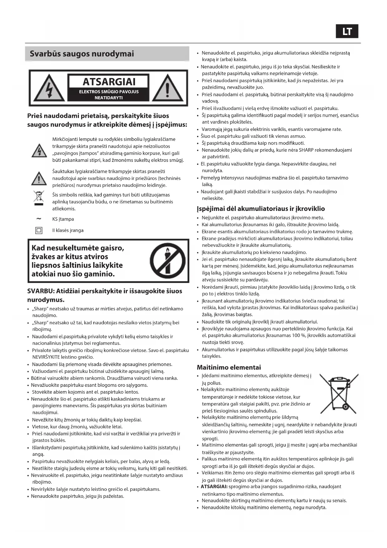 - „Sharp“ neatsako už traumas ar mirties atvejus, patirtus dėl netinkamo naudojimo.