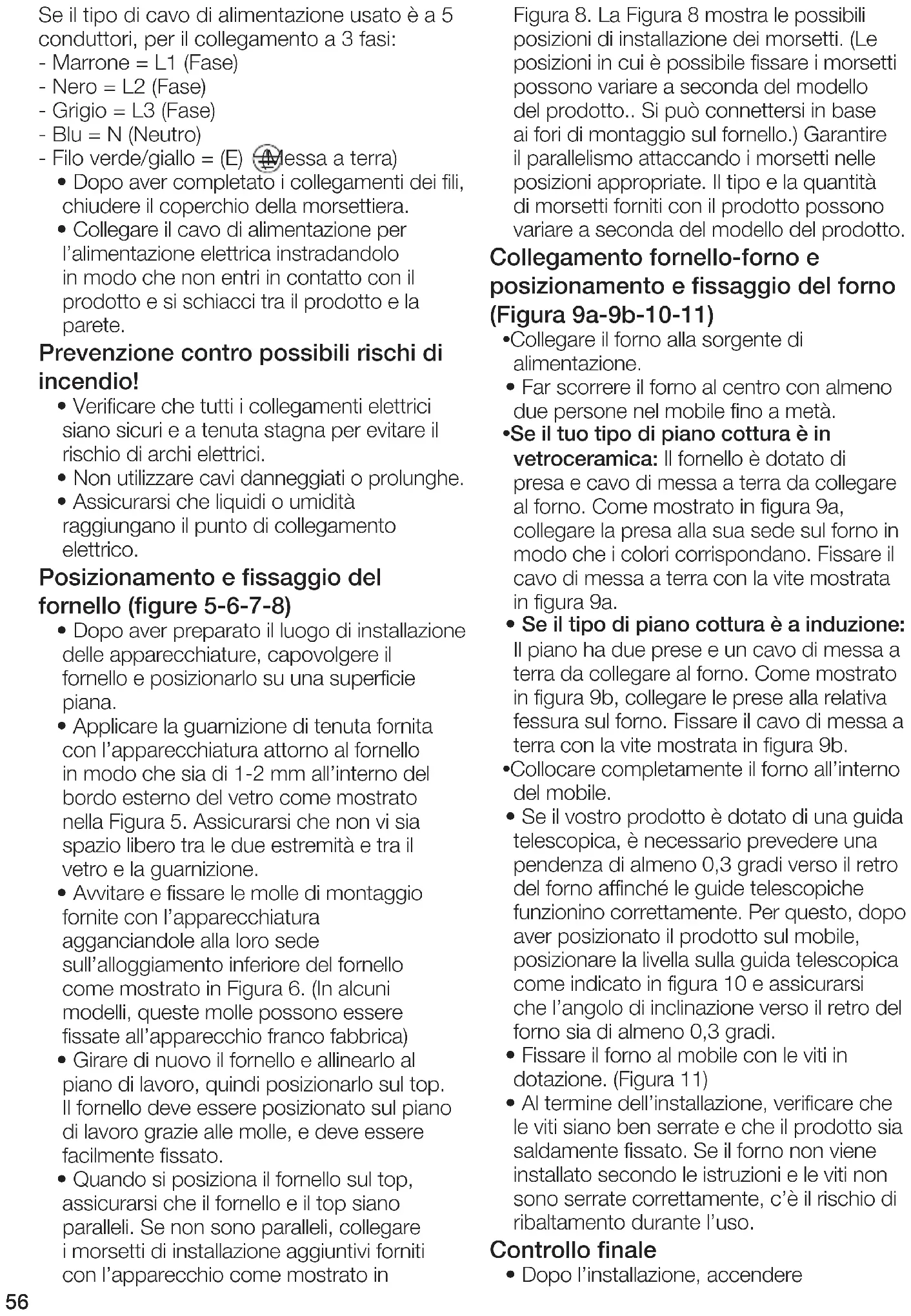 - Jei gaminys bus tiesiogiai prijungtas prie maitinimo šaltinio: Jeigu neįmanoma iš maitinimo tinklo išjungti visų polių, išjungimo prietaisai (saugikliai, grandinės apsaugos jungikliai, kontaktoriai) turi būti prijungti paliekant bent 3 mm tarpelius tarp konkaktų; visi poliai turi būti šalia (bet ne virš) viryklės, atsižvelgiant į iEE reglamentus. Nesilaikant šio nurodymo gali kilti naudojimo problemų ir gaminio garantija nebegalios.