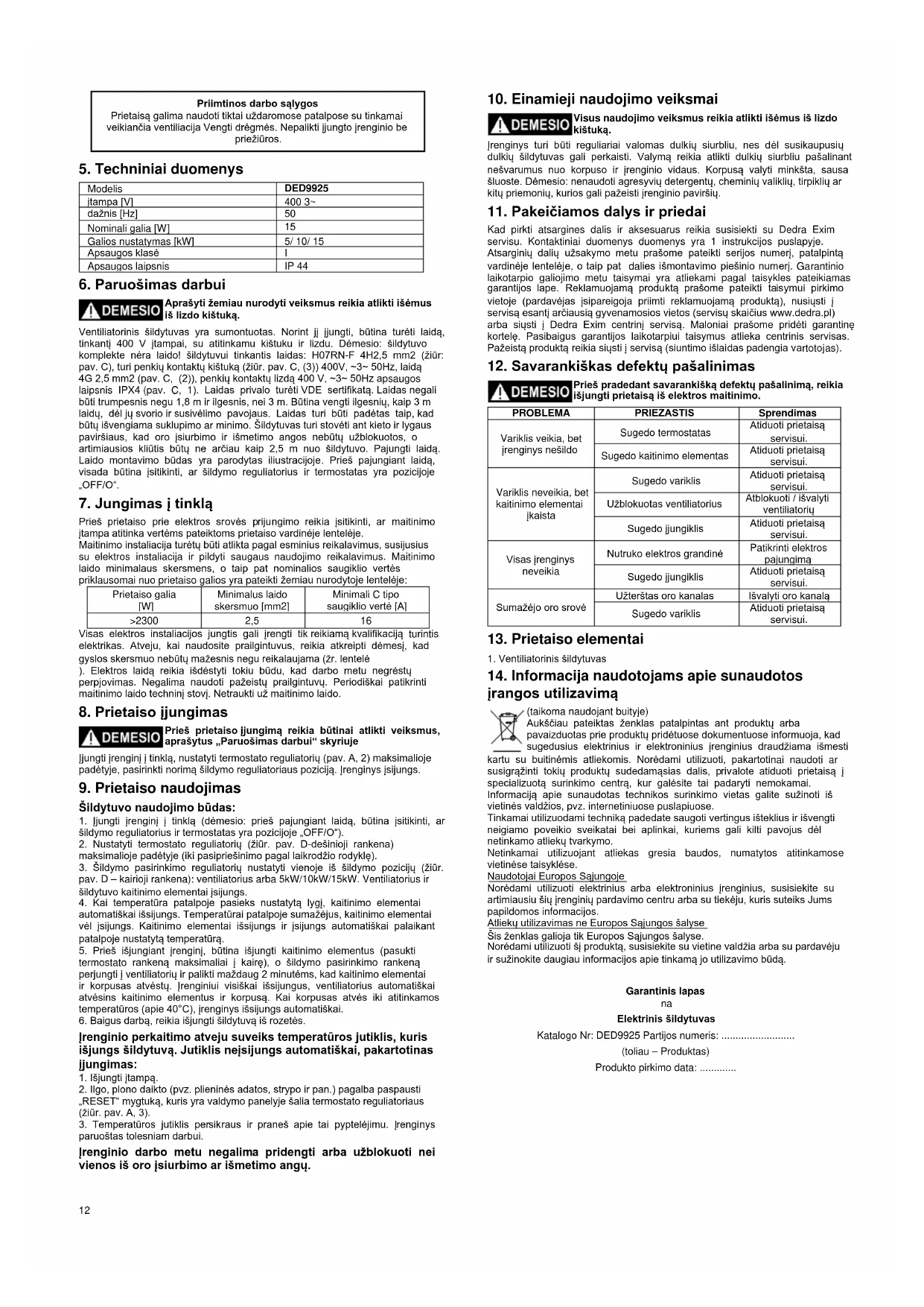 DED9925 - Šildymas DEDRA - Nemokama naudojimo instrukcija