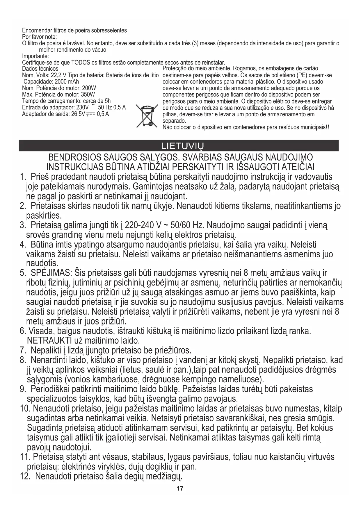 28. Prietaisas komplektuojamas su įkraunama baterija. Nemeskite į ugnį, neduokite,