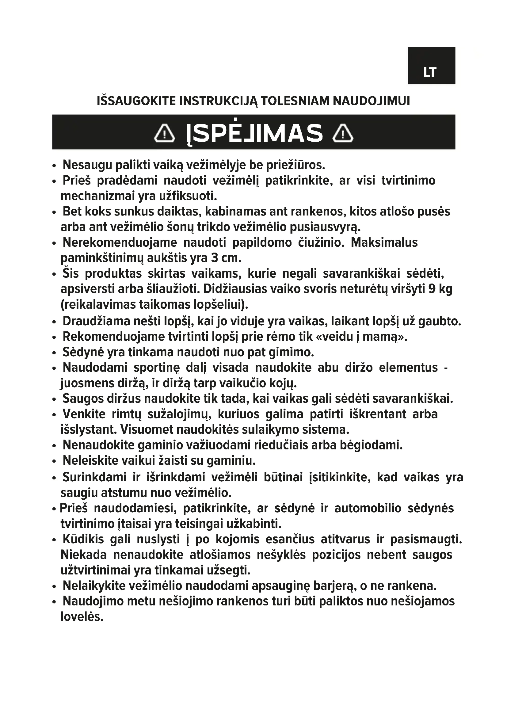 - Nesilaikydami pateiktų saugos reikalavimų, negalėsite užtikrinti savo vaiko saugumo.