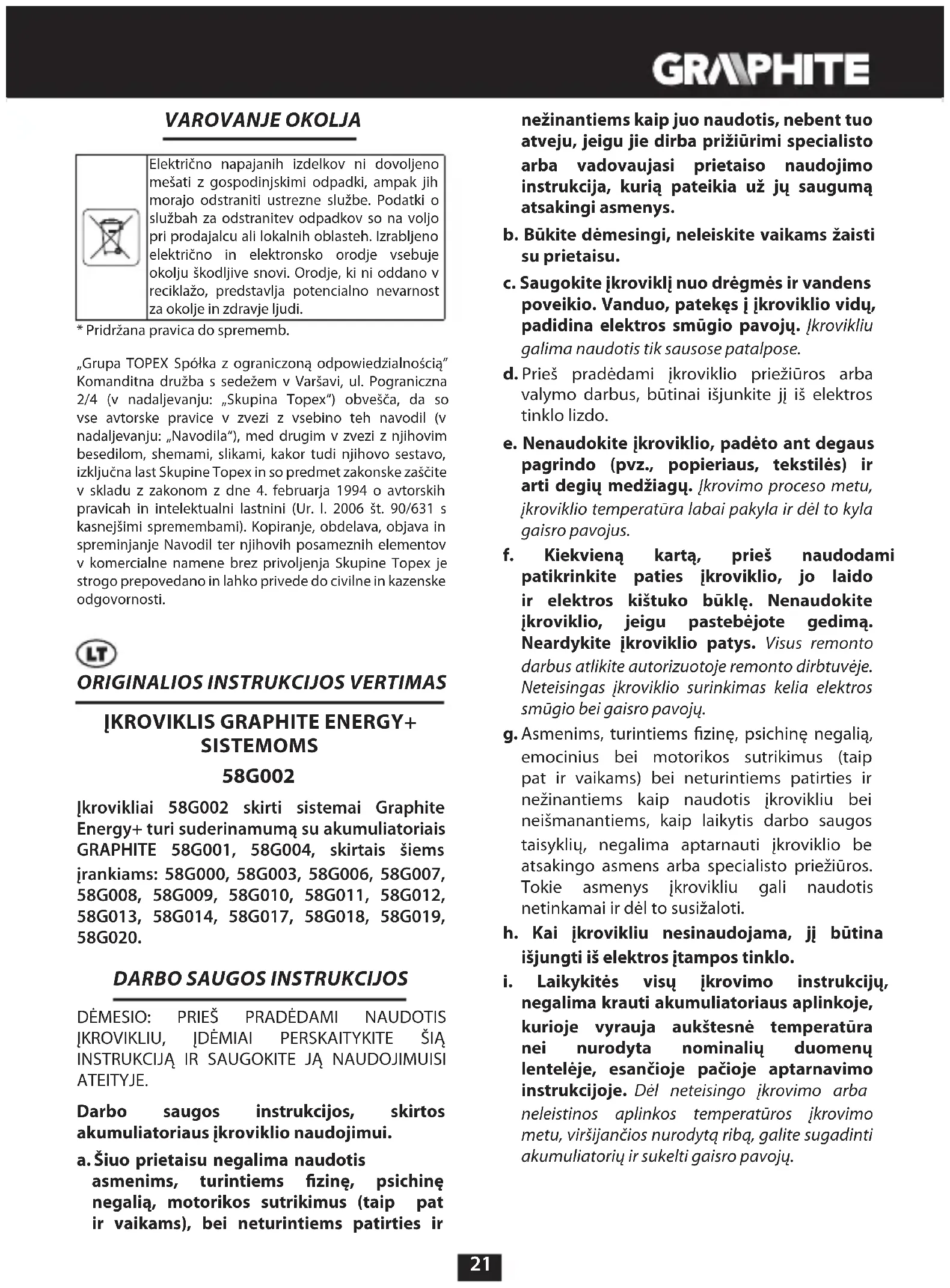 NAUDOJIMO INSTRUKCIJA 58G002 Graphite