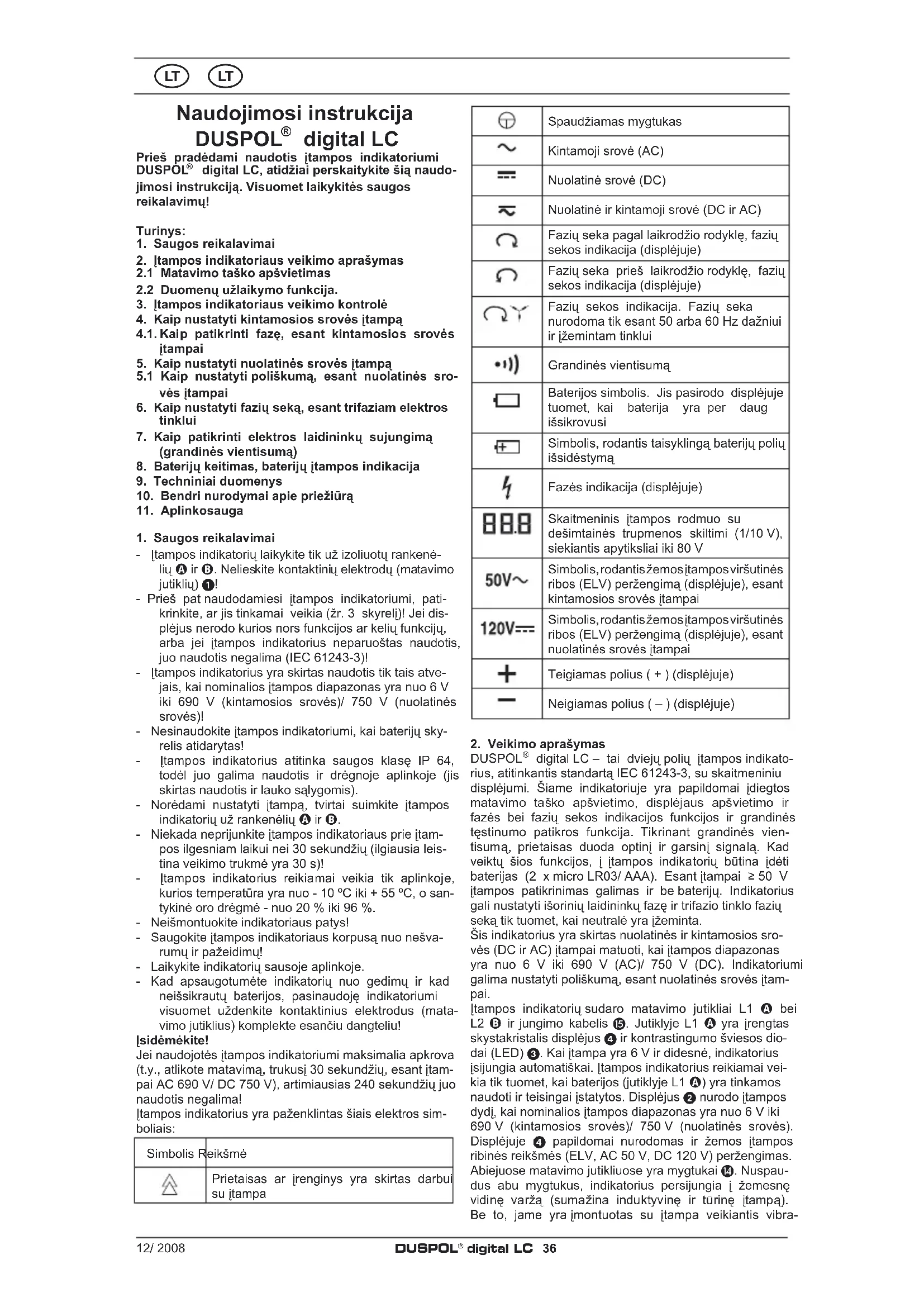 digital LC Prieš pradėdami naudotis įtampos indikatoriumi DUSPOL