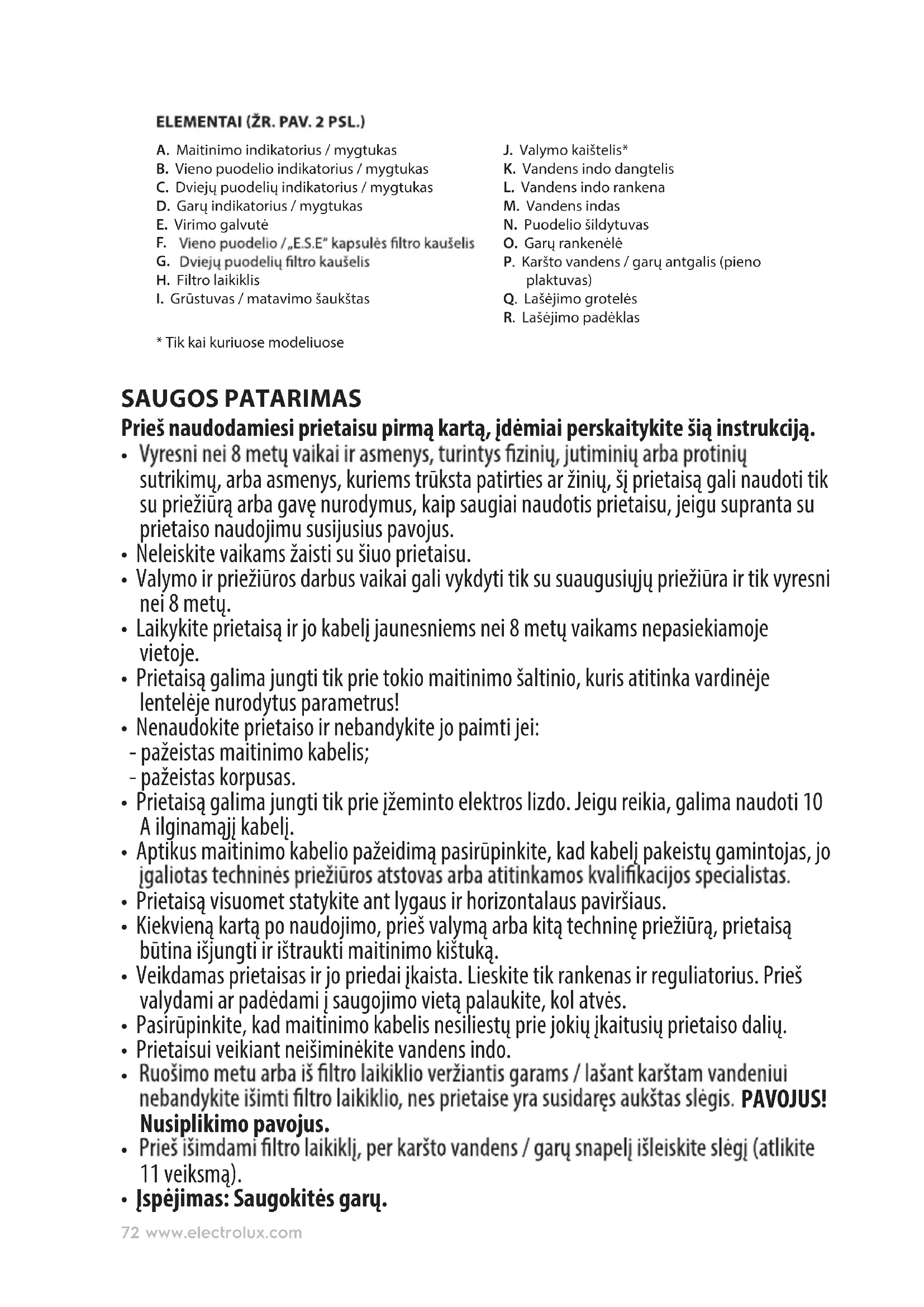 - Įspėjimas: Saugokitės garų.73www.electrolux.com