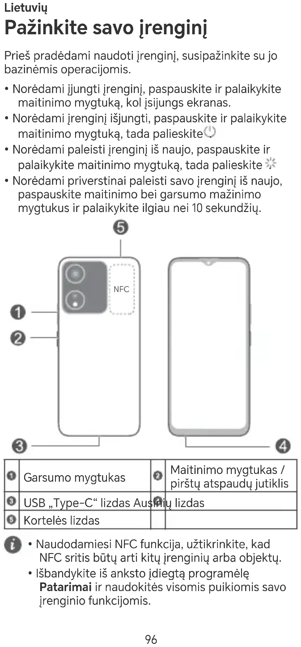 - Naudodamiesi NFC funkcija, užtikrinkite, kad NFC sritis būtų ai kitų įrenginių arba objektų.