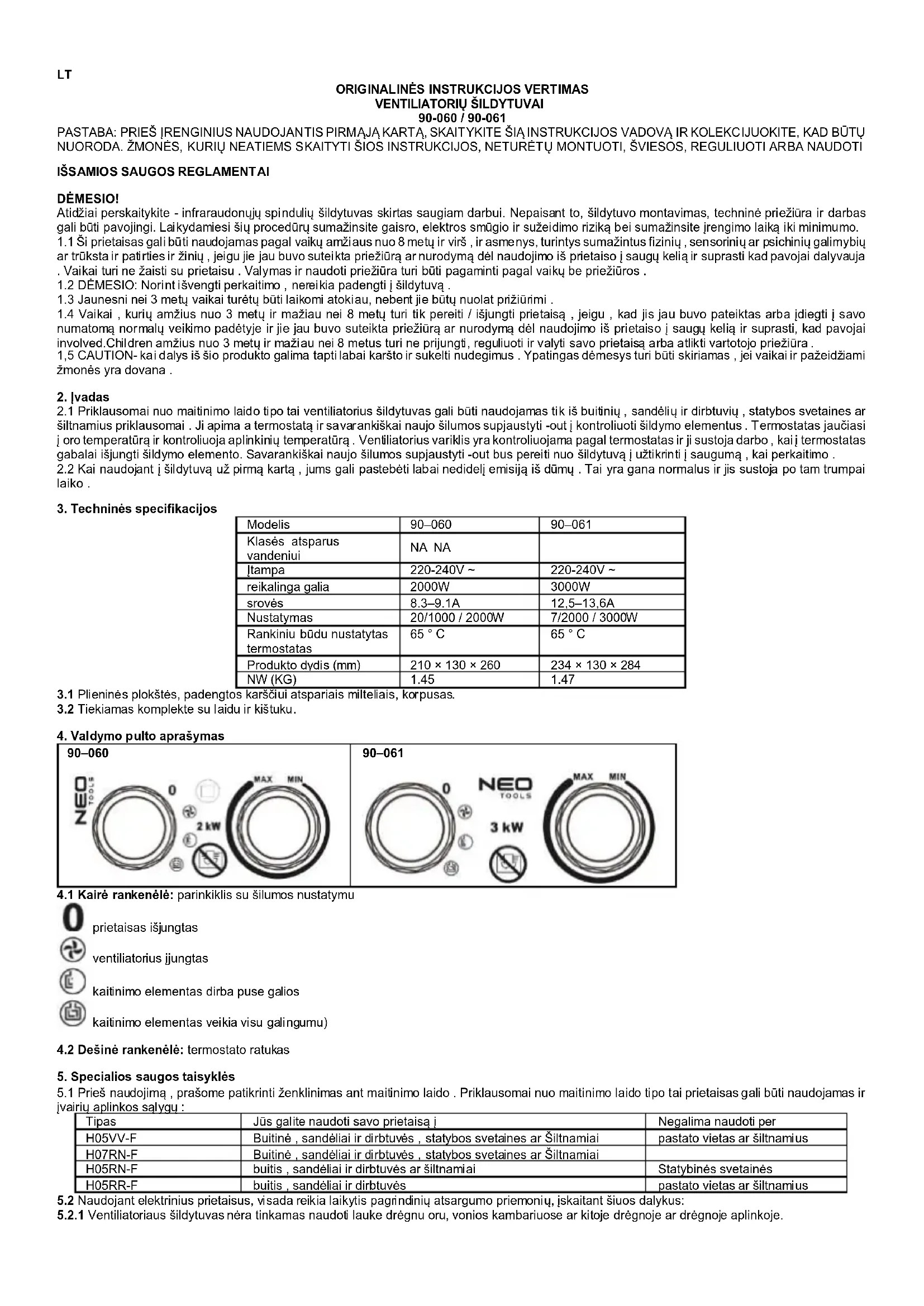 NAUDOJIMO INSTRUKCIJA 90-060 NEO