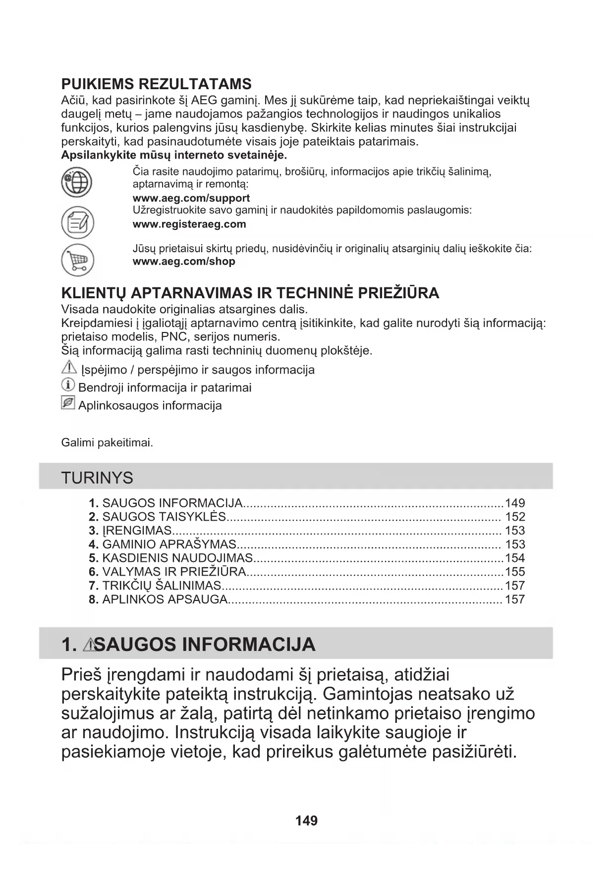 - Dėl prietaiso remonto kreipkitės į įgaliotąjį techninės priežiūros centrą. Naudokite tik originalias atsargines dalis.