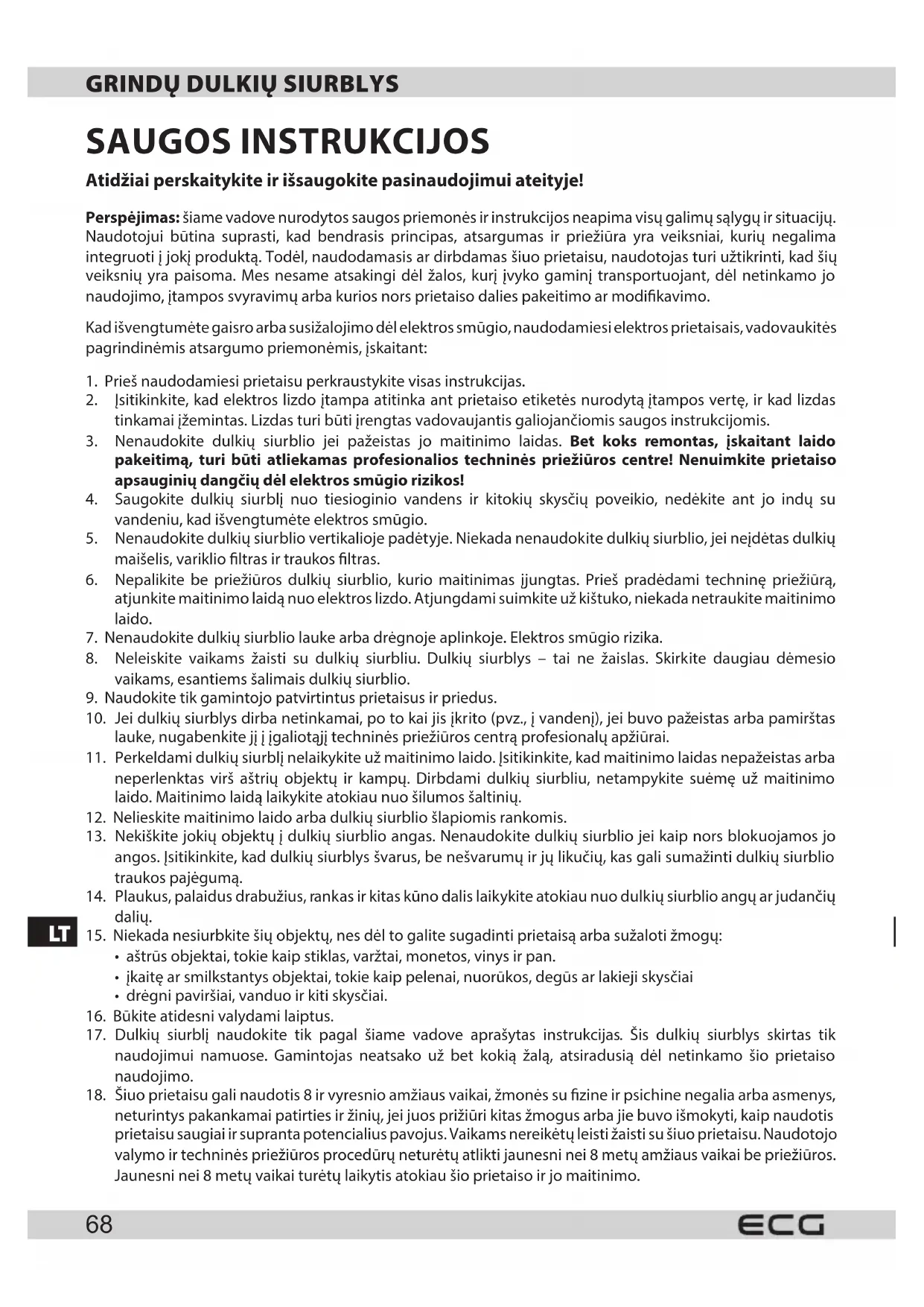 17. Dulkių siurblį naudokite tik pagal šiame vadove aprašytas instrukcijas. Šis dulkių siurblys skirtas tik
