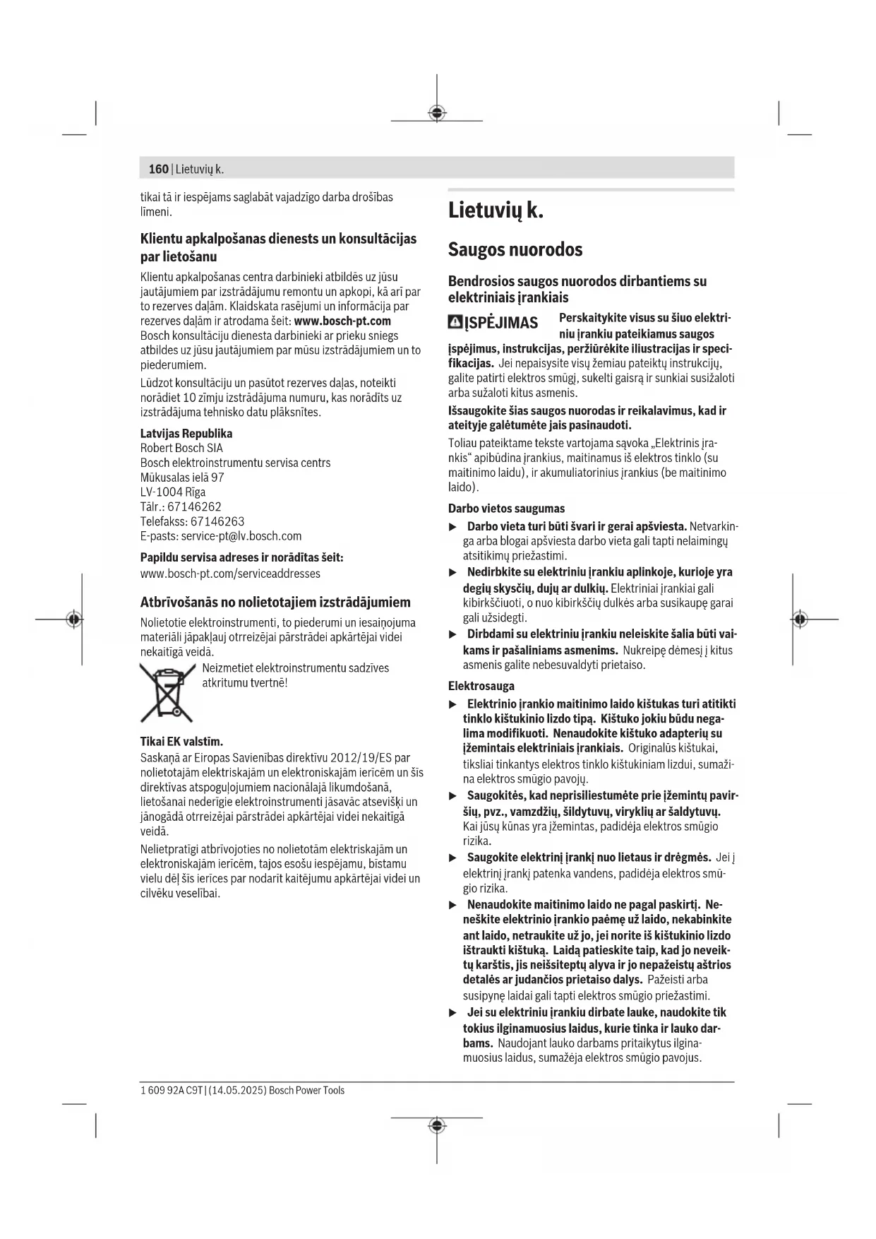 Svoris pagal „EPTA-Procedure 01:2014“ kg 1,4 Apsaugos klasė / II Duomenys galioja tik tada, kai nominalioji įtampa [U] 230V. Jei įtam- pa kitokia arba jei naudojamas specialus, tam tikrai šaliai gaminamas modelis, šie duomenys gali skirtis. Vertės gali skirtis priklausomai nuo gaminio, jos taip pat priklauso nuo naudojimo ir aplinkos sąlygų. Daugiau informacijos rasite www.bosch-professional.com/wac. Informacija apie triukšmą ir vibraciją Triukšmo emisijos vertės nustatytos pagalEN62841-2-17. Pagal A skalę išmatuotas elektrinio įrankio triukšmo lygis tipi- niu atveju siekia: garso slėgio lygis86dB(A); garso galios lygis94dB(A). Paklaida K=3dB. Dirbkite su klausos apsaugos priemonėmis! Vibracijos bendroji vertė a