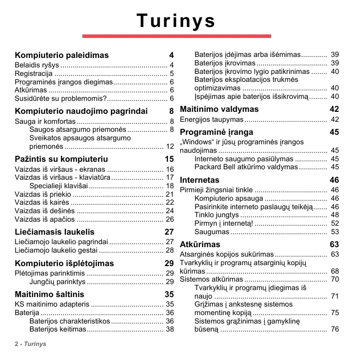 Téléchargez la notice de votre Nešiojamas kompiuteris au format PDF gratuitement ! Retrouvez votre notice LV44HCG-32344G50MNWS - PACKARD BELL et reprennez votre appareil électronique en main. Sur cette page sont publiés tous les documents nécessaires à l'utilisation de votre appareil LV44HCG-32344G50MNWS de la marque PACKARD BELL.