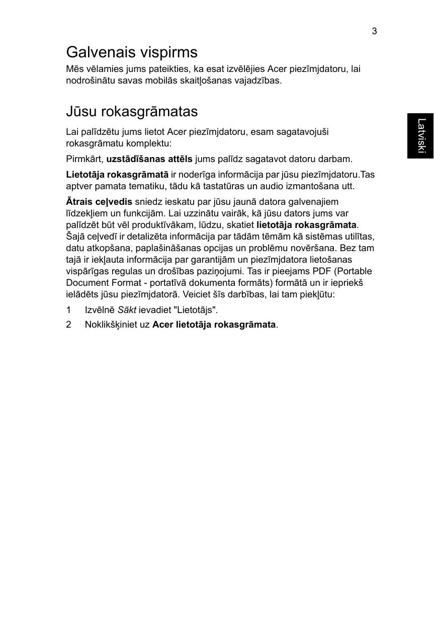 Lejupielādējiet instrukcijas savam Portatīvais dators PDF formātā bez maksas! Atrodiet savu rokasgrāmatu ASPIRE V5-171 - ACER un atgūstiet kontroli pār savu elektronisko ierīci. Šajā lapā ir publicēti visi dokumenti, kas nepieciešami jūsu ierīces lietošanai. ASPIRE V5-171 zīmola ACER.