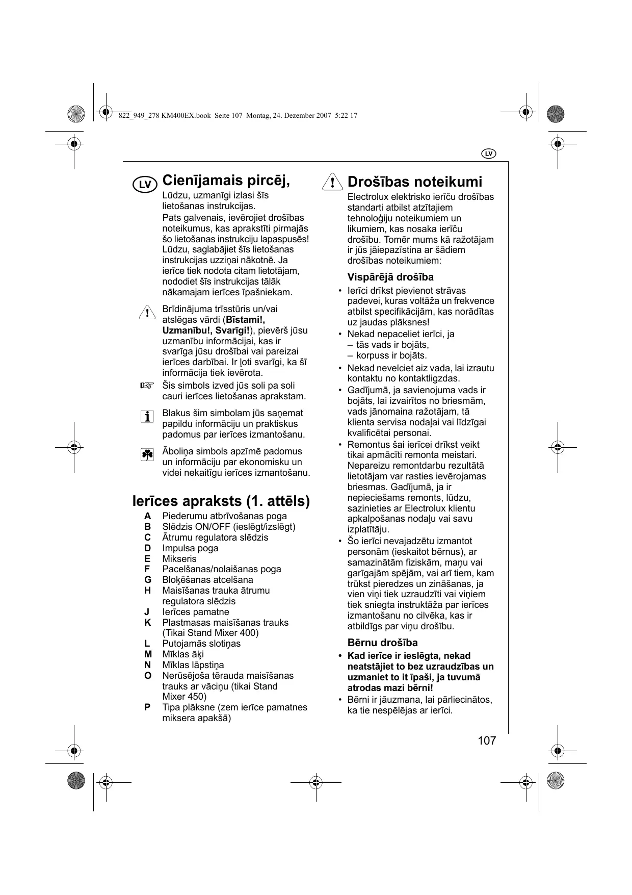 - Remontus šai iericei dríkst veikt tikai apmáčti remonta meistari. Nepareizu remontdarbu rezultātā lietotājam var rasties ieverojamas briesmas. Gadījumā, ja ir nepieciešams remonts, lūdzu, sazinieties ar Electrolux klientu apkalpošanas nodalu vai savu izplatītāju.