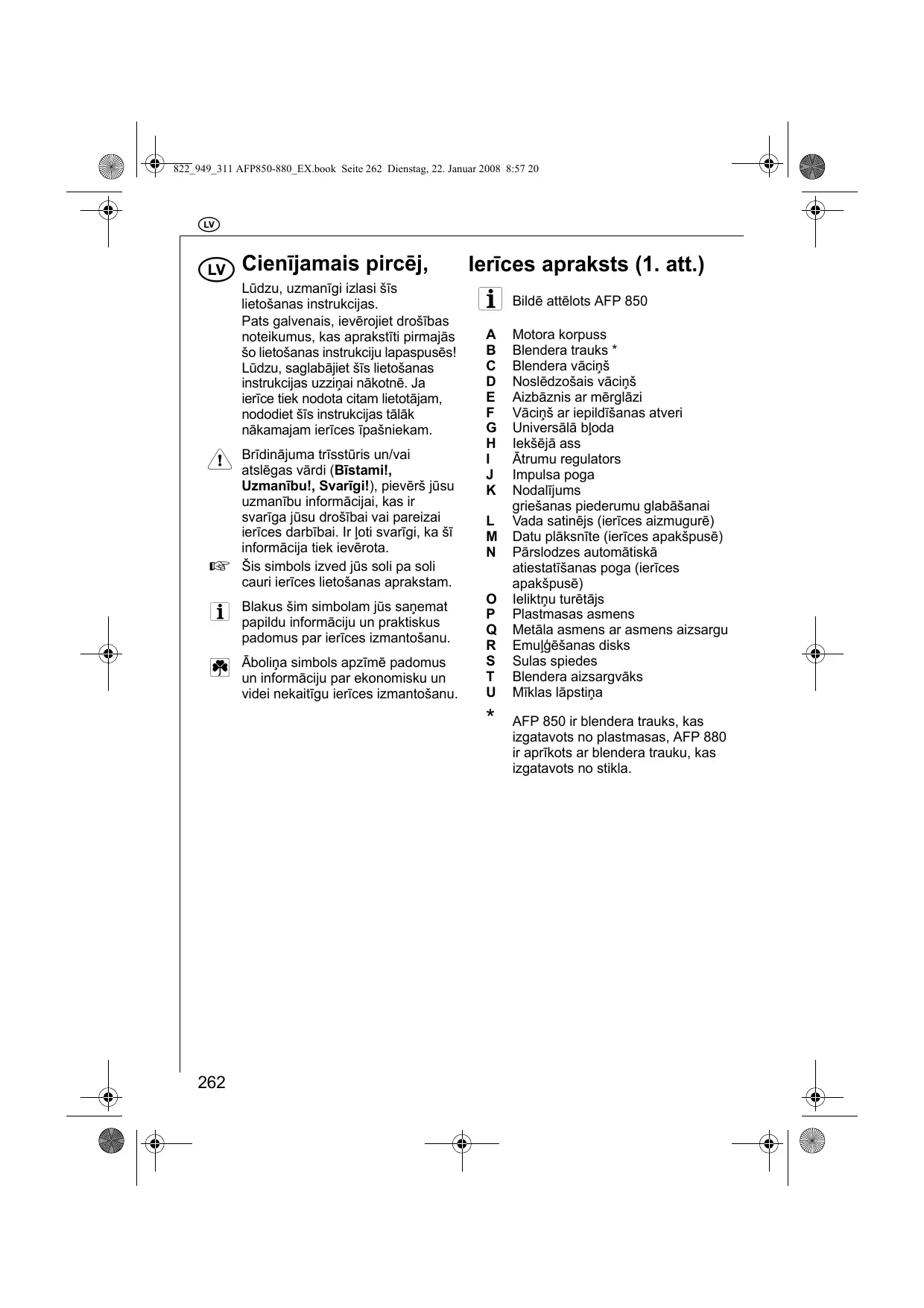 LIETOŠANAS INSTRUKCIJA AFP880 AEG-ELECTROLUX