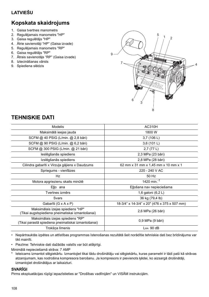 AC310H - Kompressors MAKITA - Bezmaksas lietošanas instrukcija
