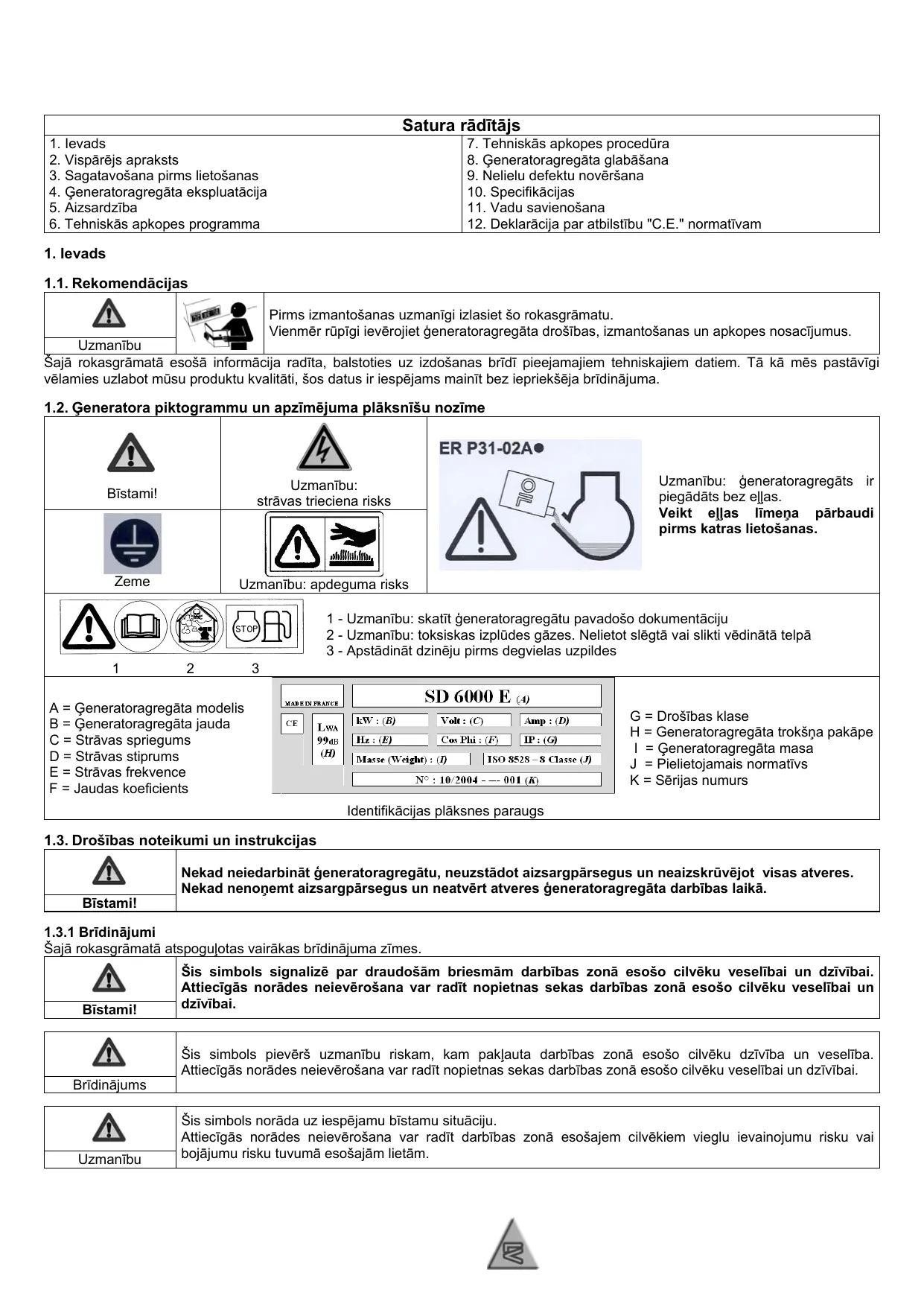 Manuel d'utilisation et d'entretien (Notice originale) 1.2. Pictogrammes et plaquettes figurant sur les groupes avec leur signification