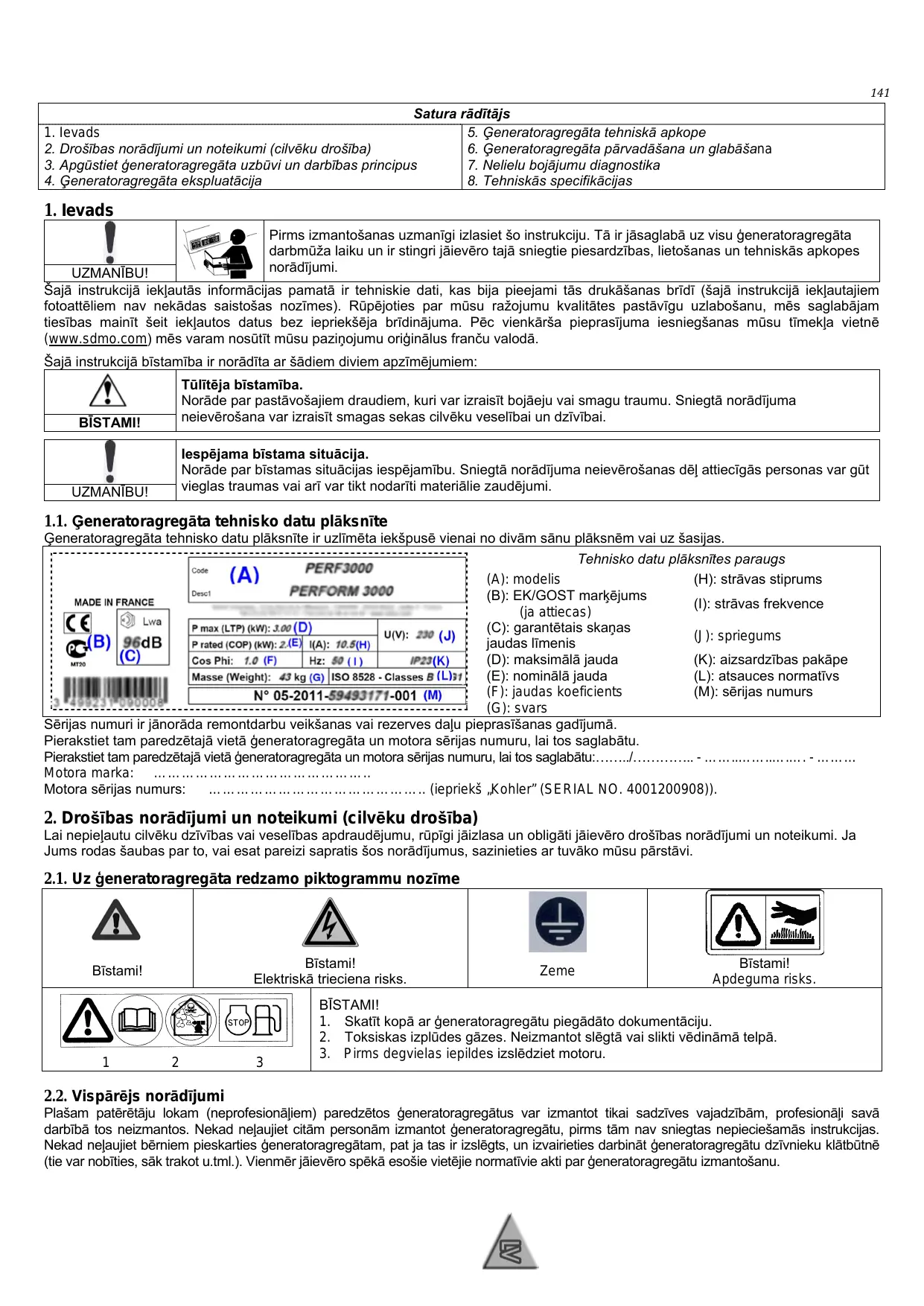 VARIO 1000I, VARIO 2000I, VARIO 3000I - Ģenerators SDMO - Notice d'utilisation et mode d'emploi gratuit
